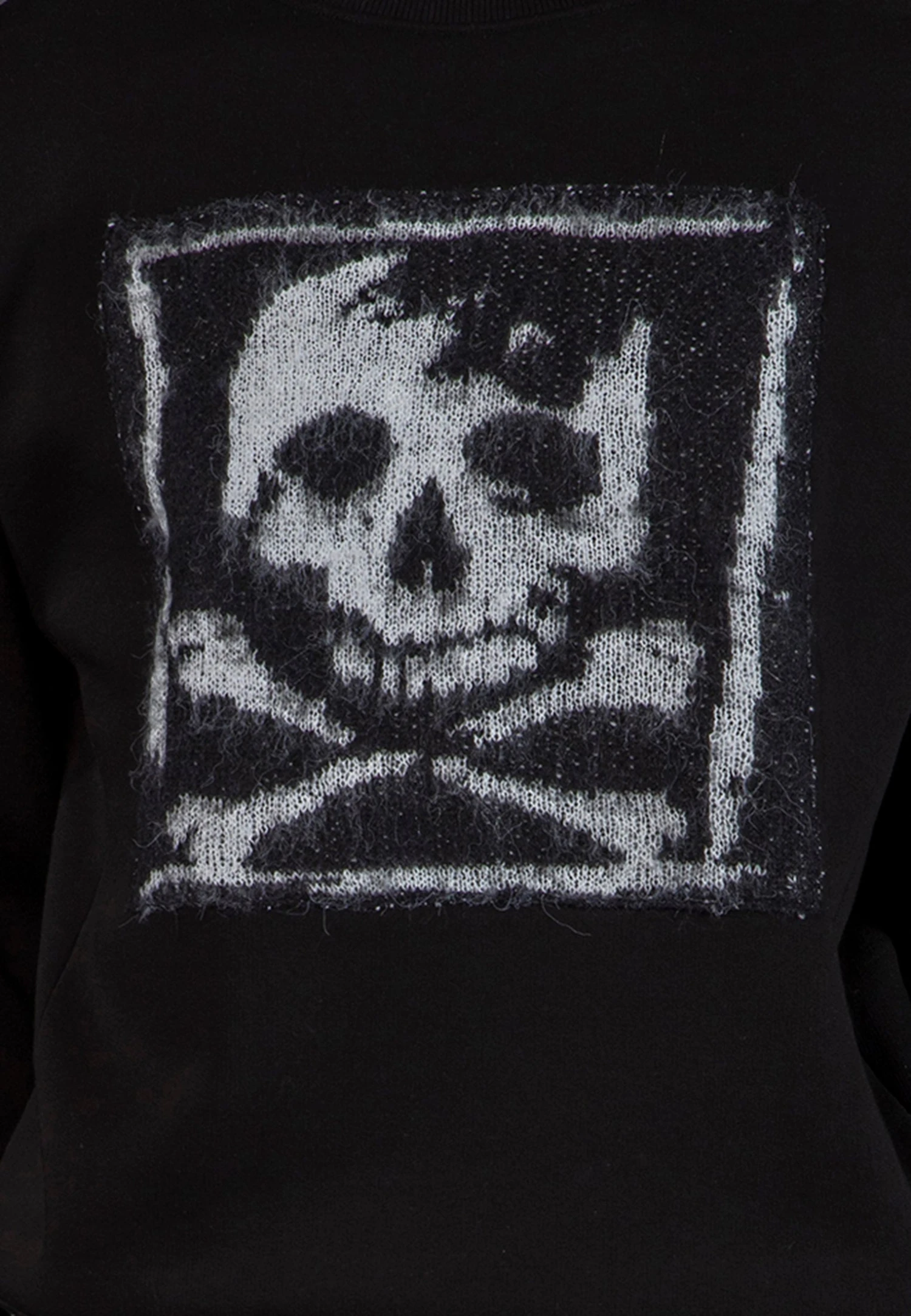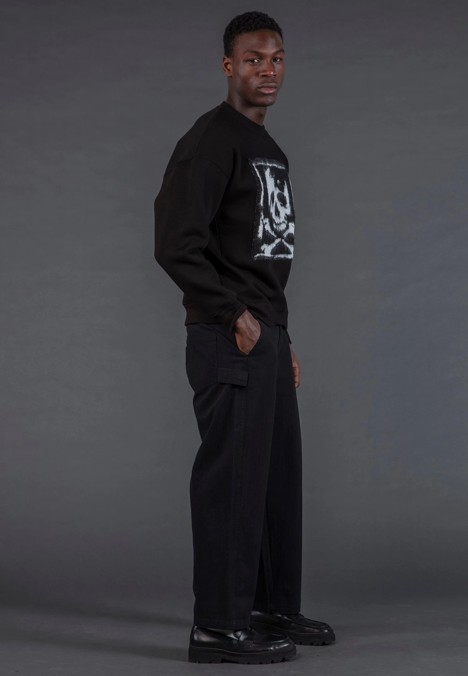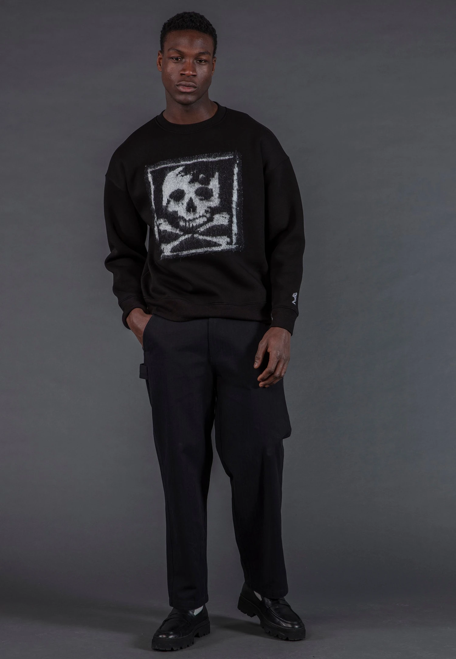 Cosy up in style with the Antarsia Skull Sweatshirt in black. Made from a soft cotton-blend fabric, it features a relaxed silhouette with a ribbed crew neckline, cuffs and hem. Finished with our textured skull graphic on the front and an embroidered skeleton logo on the cuff, it’s perfect for pairing with jeans or cargos or layered under a jacket when the temperature drops.