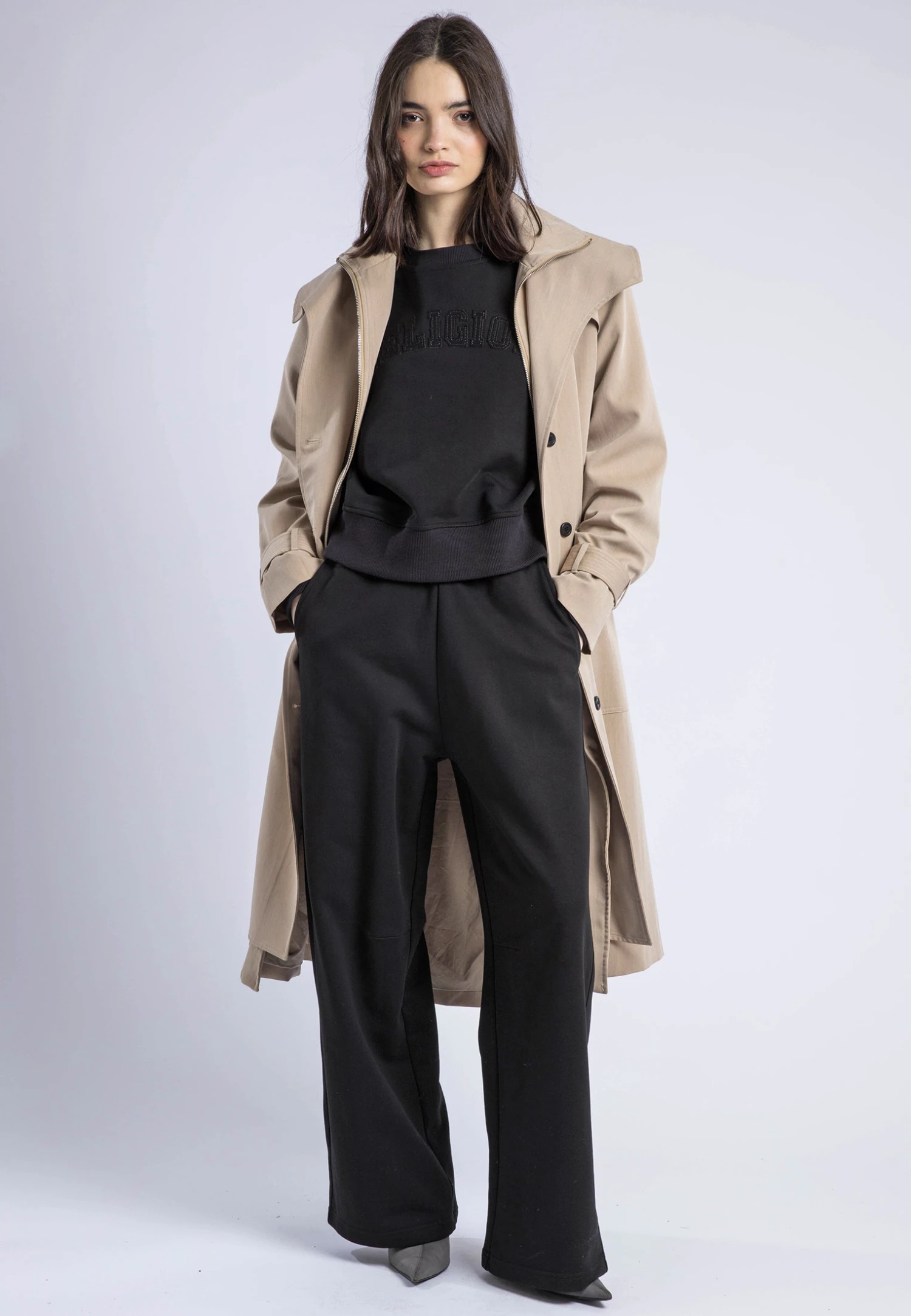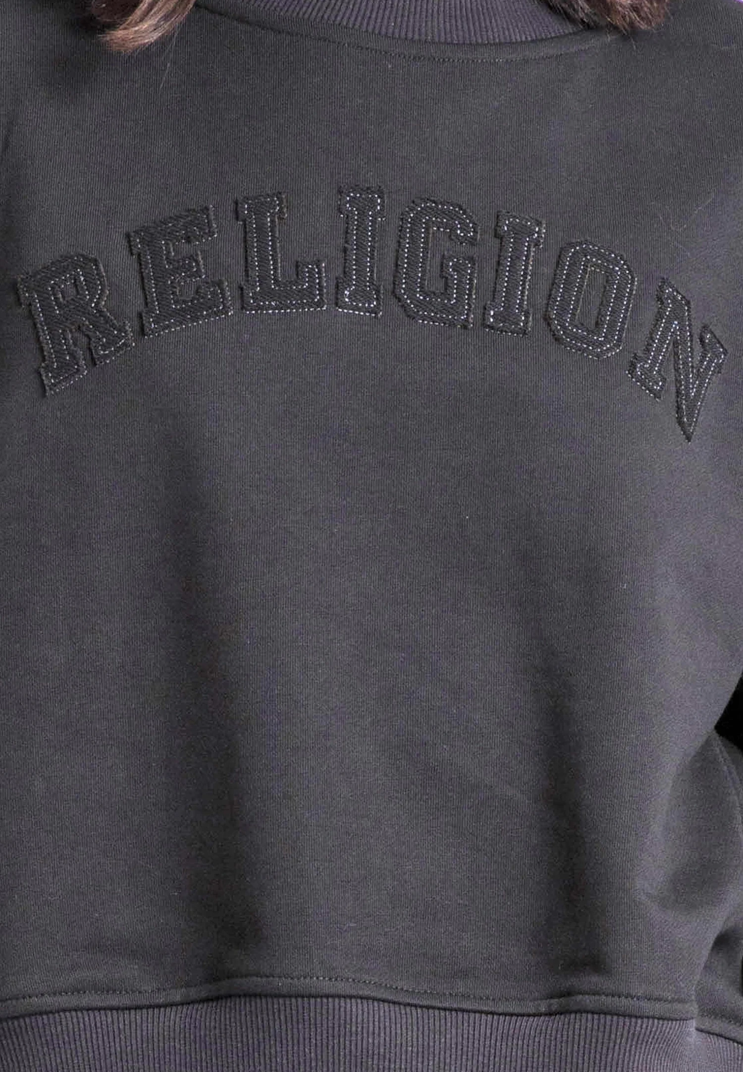 This hip-length, crew neck applique batwing sweatshirt in black combines comfort and style with its relaxed fit and long sleeves. Made from soft cotton, it features a unique RELIGION applique for a bold touch. Pair it effortlessly with jeans for a casual look or with matching trousers for a coordinated, trendy outfit. The model wears a size UK 10. Length from the top: 57 cm.