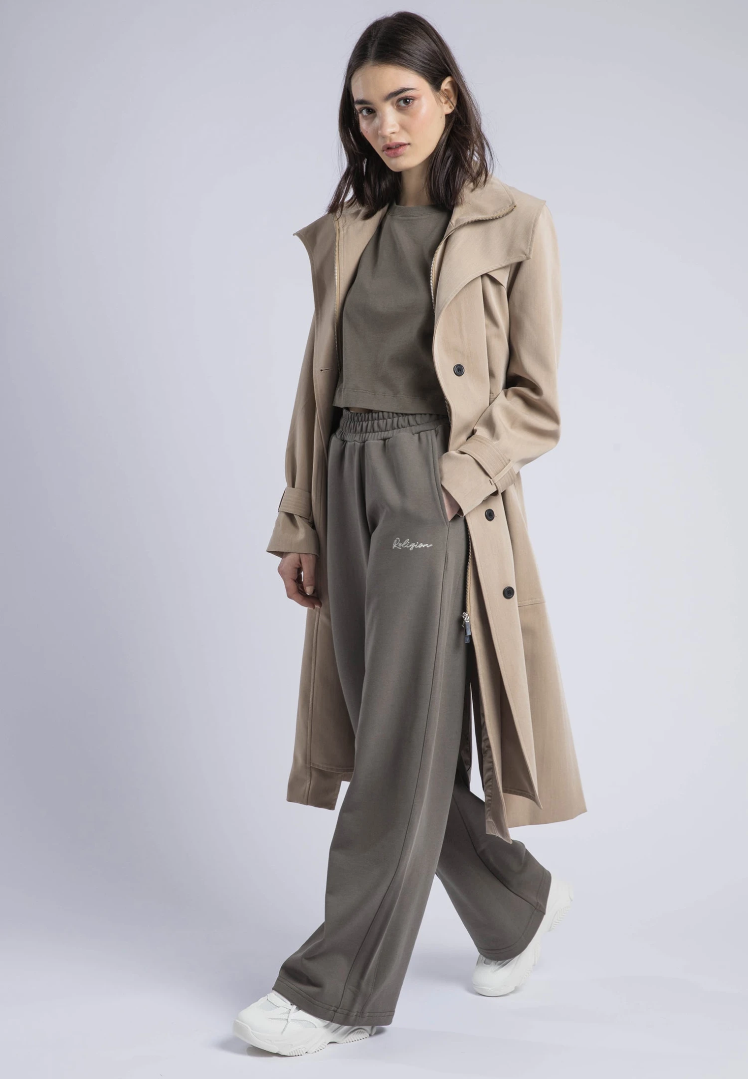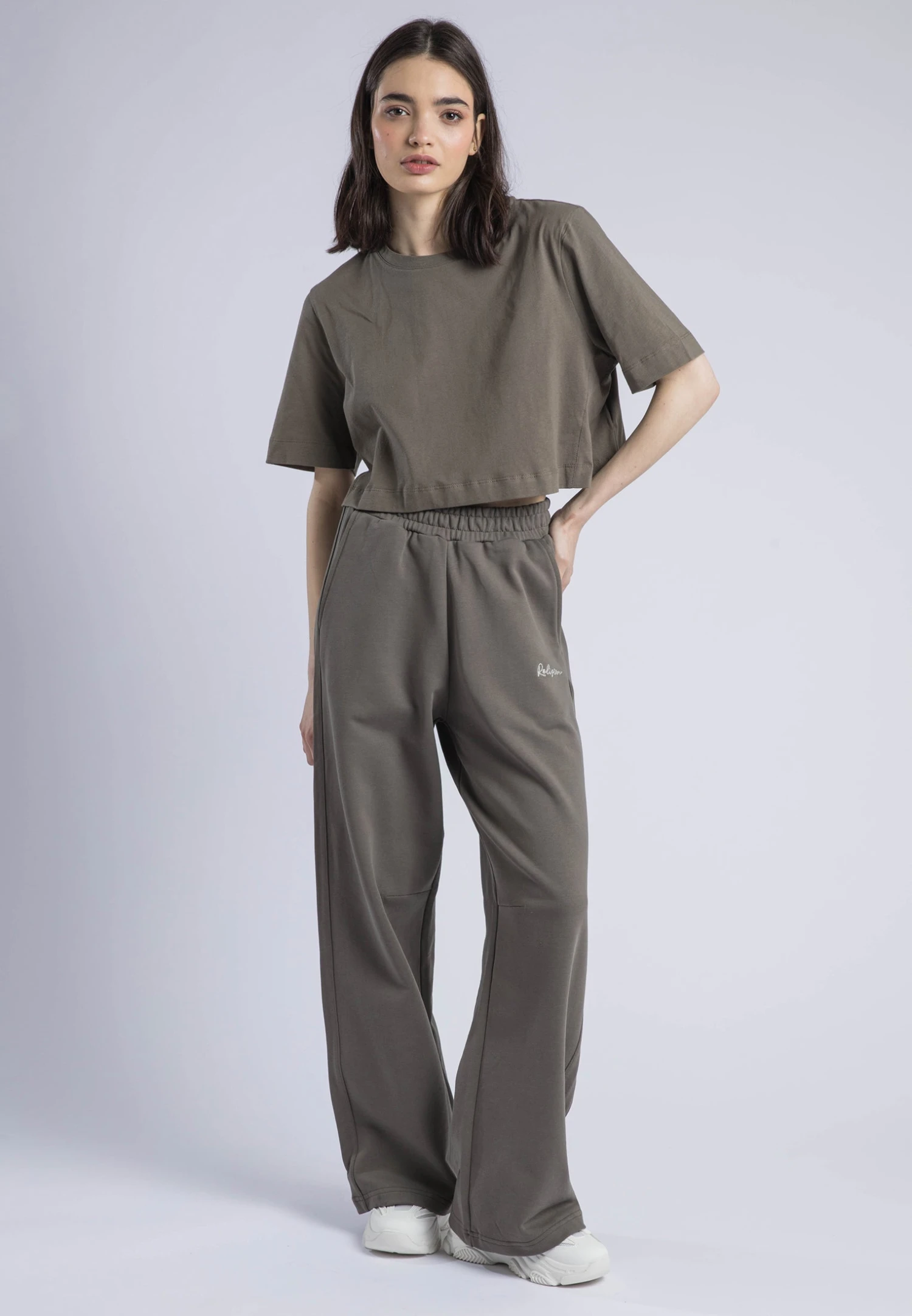 The Crop T-Shirt in brindle is a stylish and versatile tee crafted from soft, sustainable cotton jersey. Featuring a classic crew neck, short sleeves, and a flattering cropped length, it’s perfect for layering or wearing on its own. Finished with RELIGION signature embroidery at the back neck, adding a distinctive and timeless touch to your wardrobe. The model wears a UK size 10. Length from the top: 45 cm.