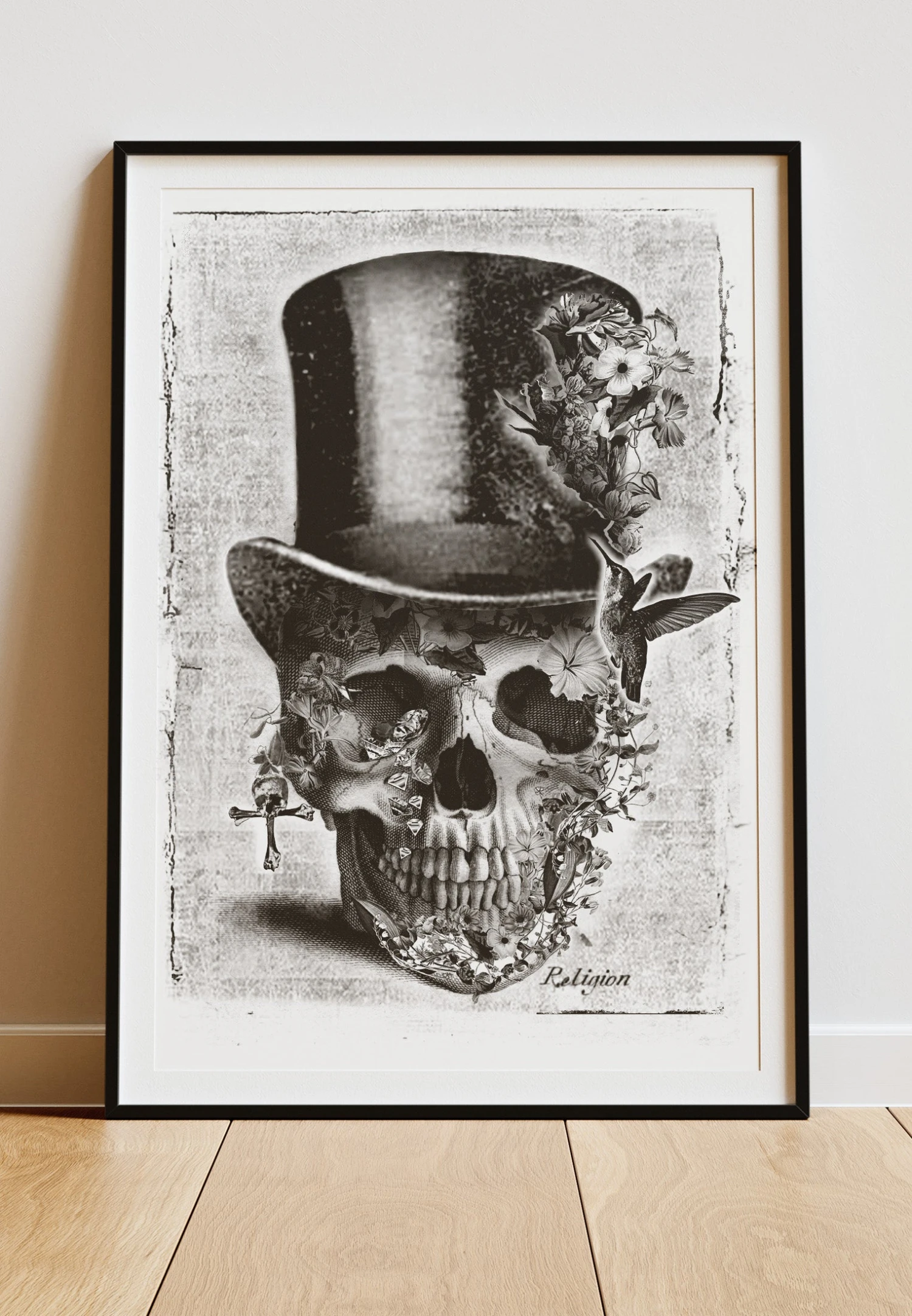 DIGITAL PRINT TOP HAT SKULL ART POSTER