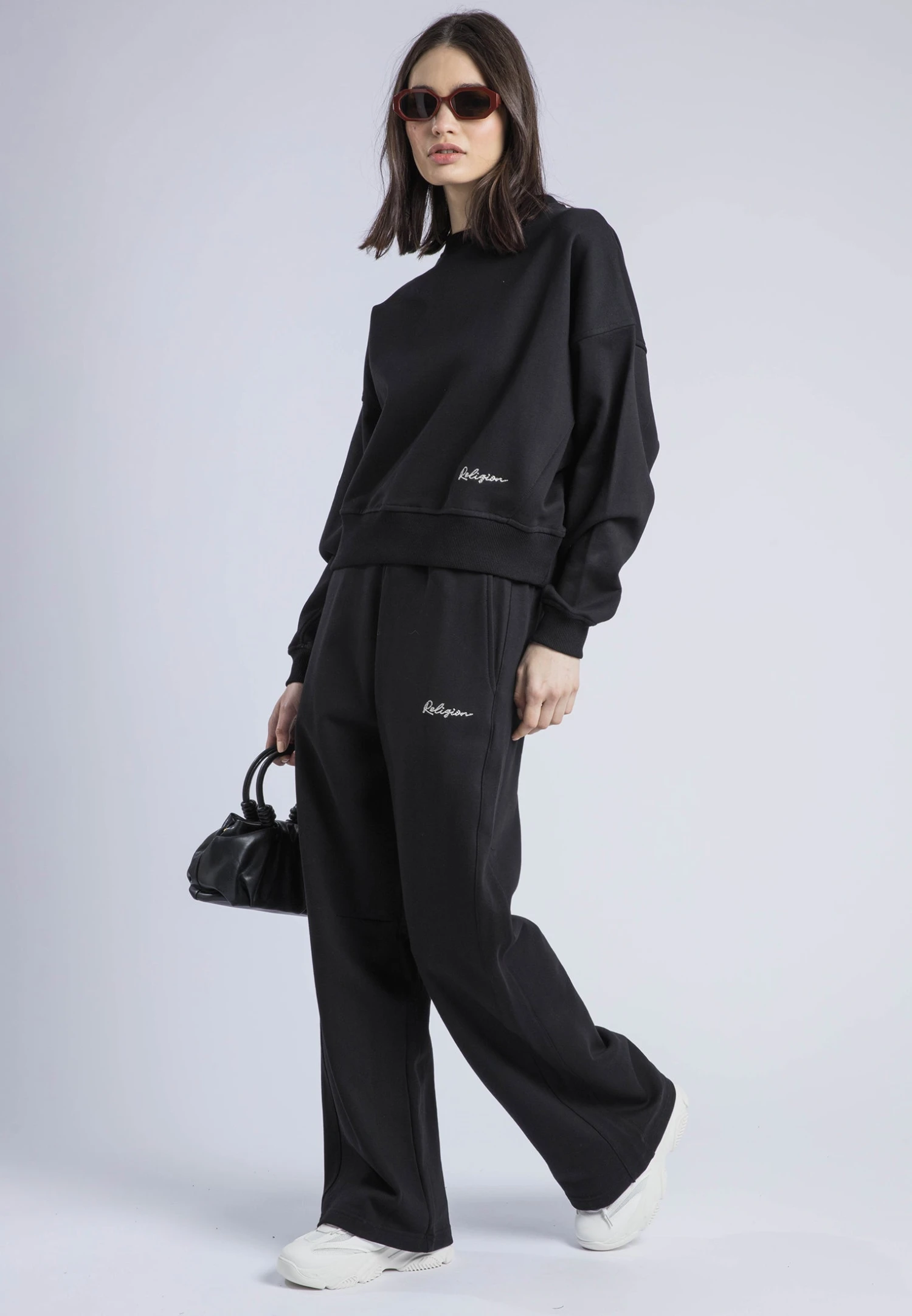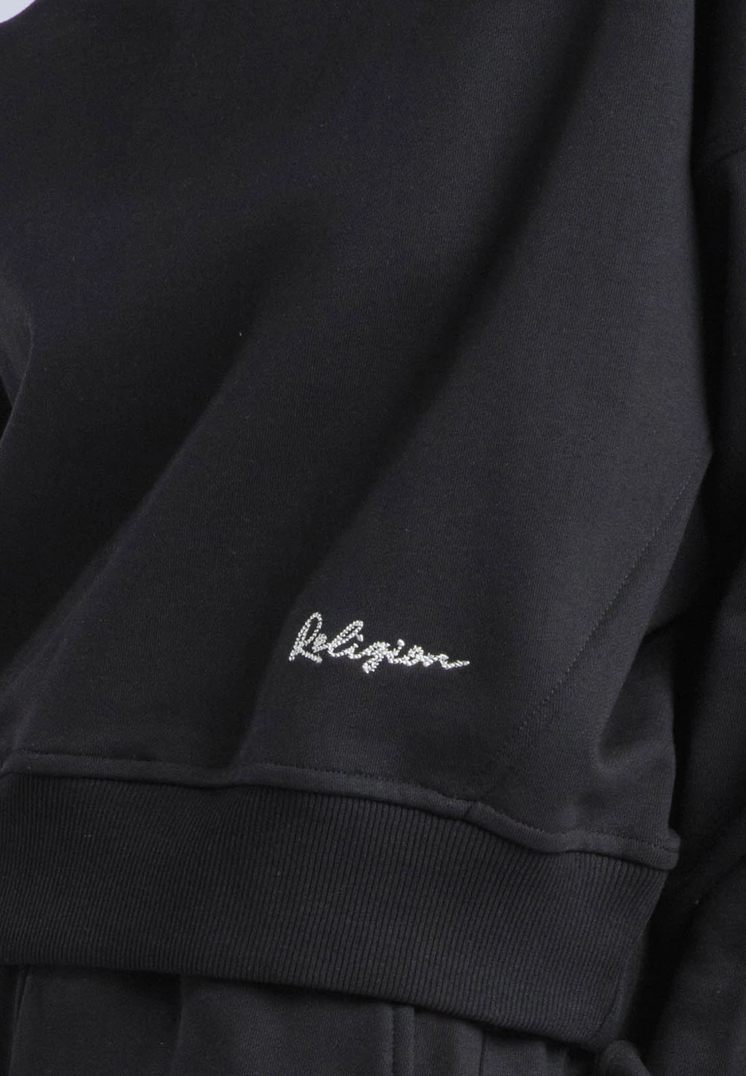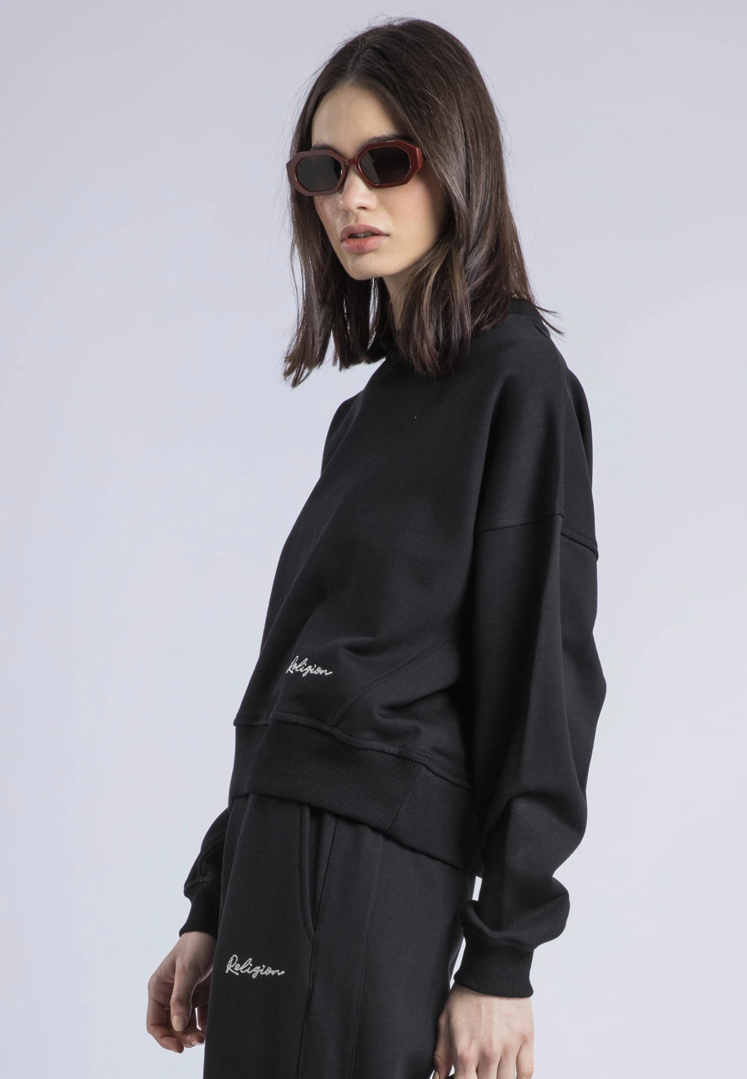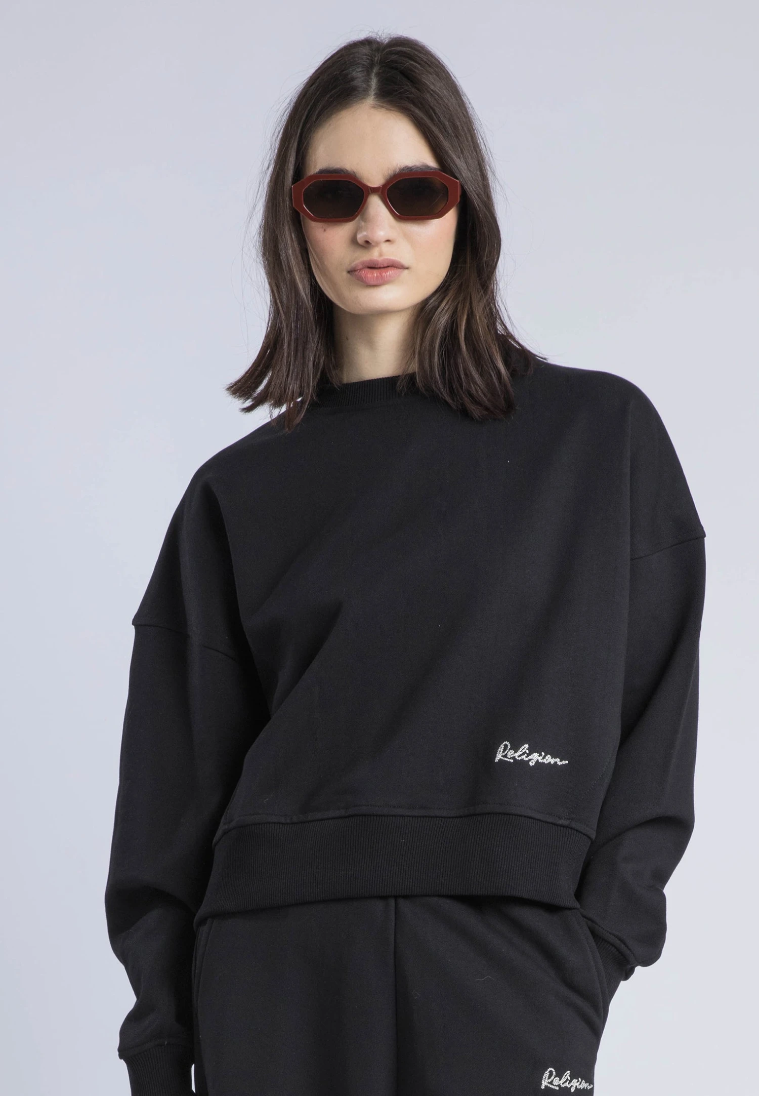 This hip-length, crew neck batwing sweatshirt in brindle combines comfort and style with its relaxed fit and long sleeves. Made from soft cotton, it features our RELIGION signature embroidery on the front hem. Pair it effortlessly with jeans for a casual look or with matching trousers for a coordinated, trendy outfit. The model wears a size UK 10. Length from the top: 57 cm.
