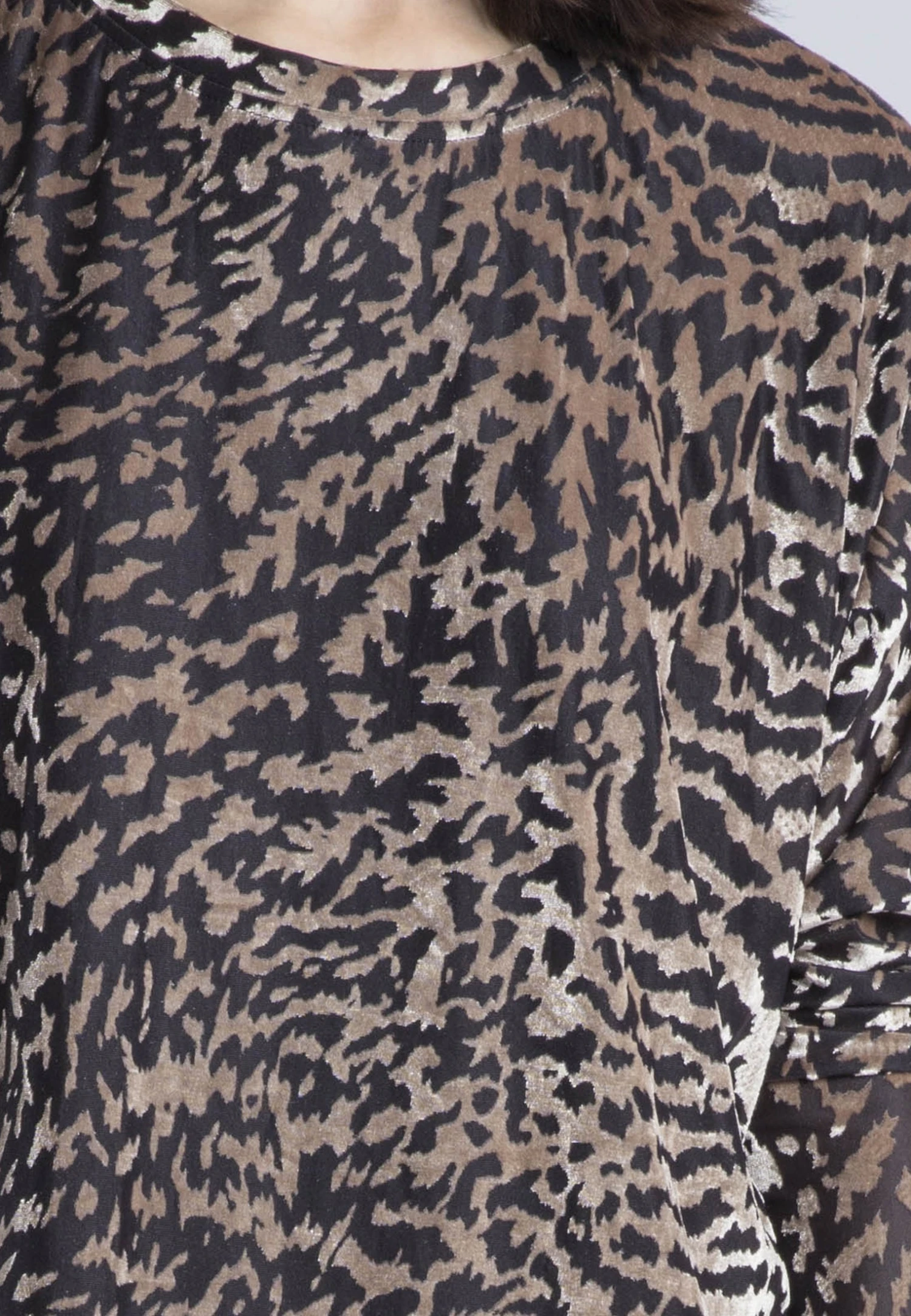 The Emmy Dress is a stunning party piece crafted from burn-out velvet in a silver and black animal jacquard pattern. Featuring a boat neck, long sleeves, and an oversized fit, it is cinched at the waist with a tie belt for added shape. The short length completes this elegant and bold dress, perfect for any special occasion. The model wears a size UK 10. Length from the top: 90 cm