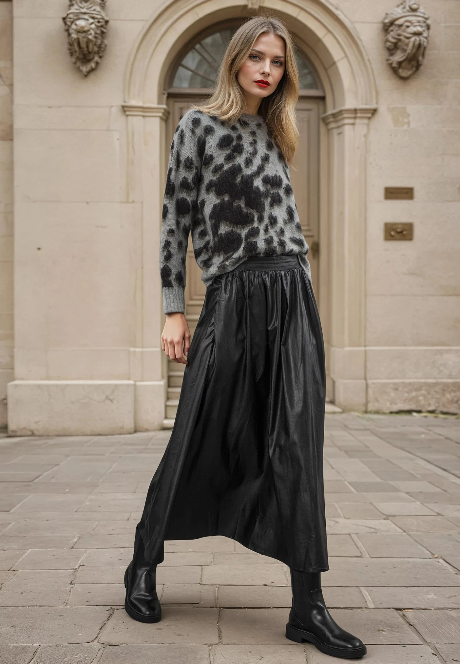 The Erin Jumper is crafted from a brushed wool mix yarn in a stylish animal jacquard pattern in grey and brown tones. Featuring a round neck, long sleeves, and a regular fit, this hip-length jumper is both lightweight and warm. It pairs perfectly with the matching Erin Cardigan, making it an ideal combination for everyday style and comfort. The model wears a size UK 10. length from the top: 60 cm