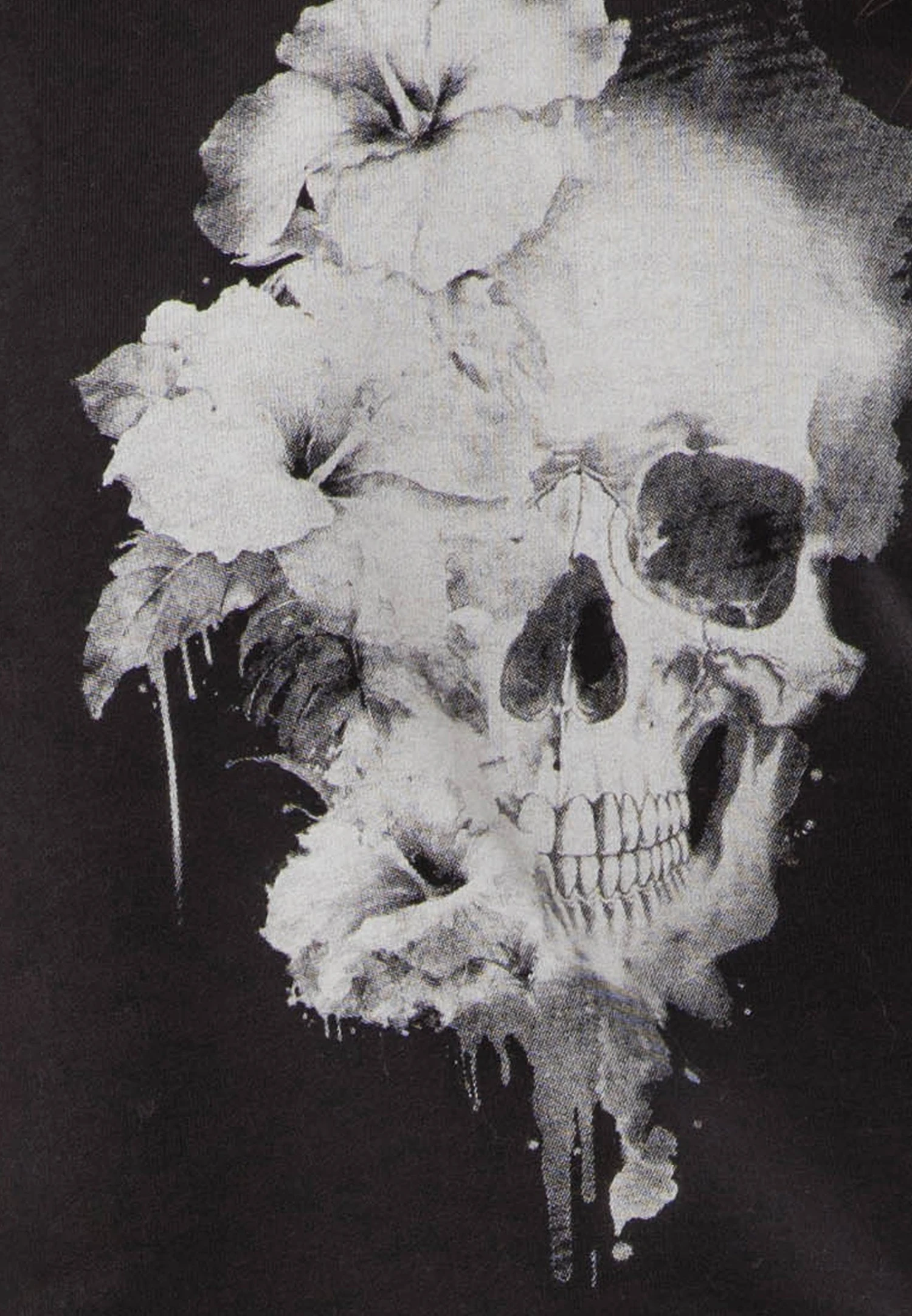 The Flora Sweat in black is a comfortable, stylish sweatshirt crafted from soft cotton with a relaxed fit and hip-length cut. Featuring unique batwing sleeves and a classic crew neck, it’s adorned with our skull print on the chest and Religion’s signature embroidery at the hem. This easygoing piece adds a cool, edgy touch to everyday wear. The model wears a size UK 10. Length from the top: 57 cm