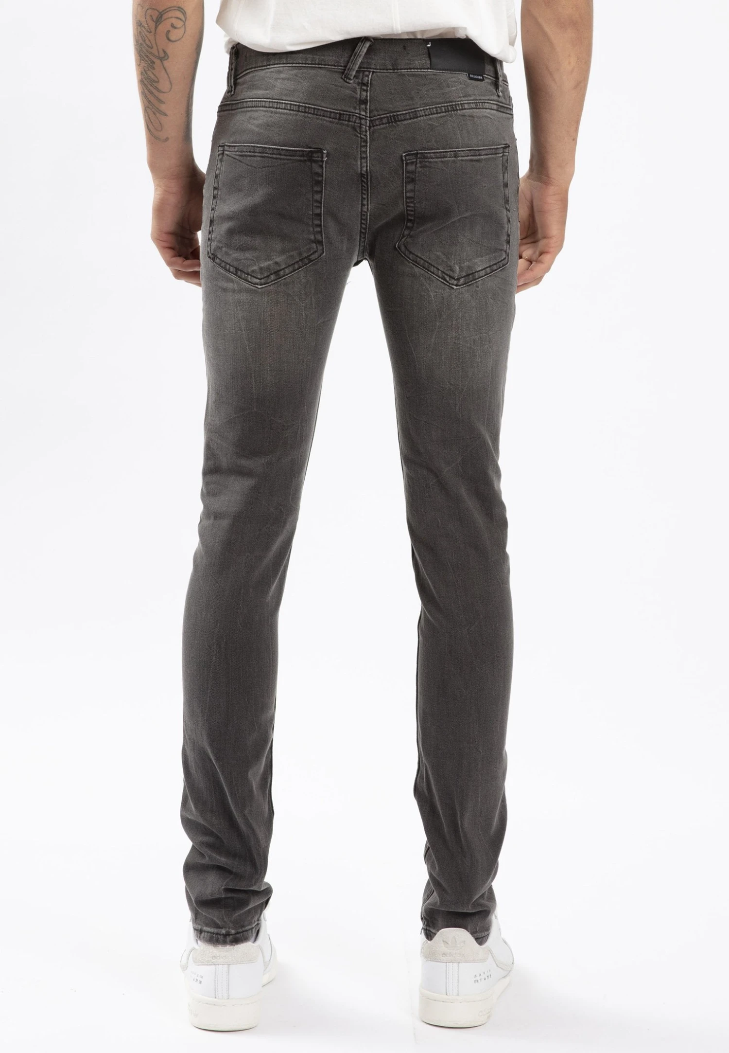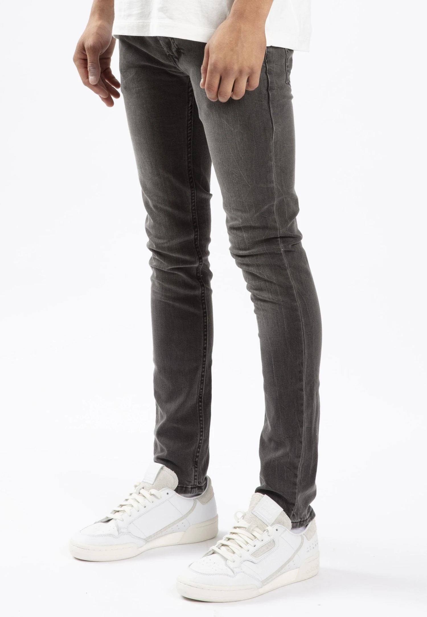 The mid-rise washed grey ‘Hero Jeans’ are RELIGION’s super skinny fit denim complete with five-pocket detailing, waist button, and zip fly.
