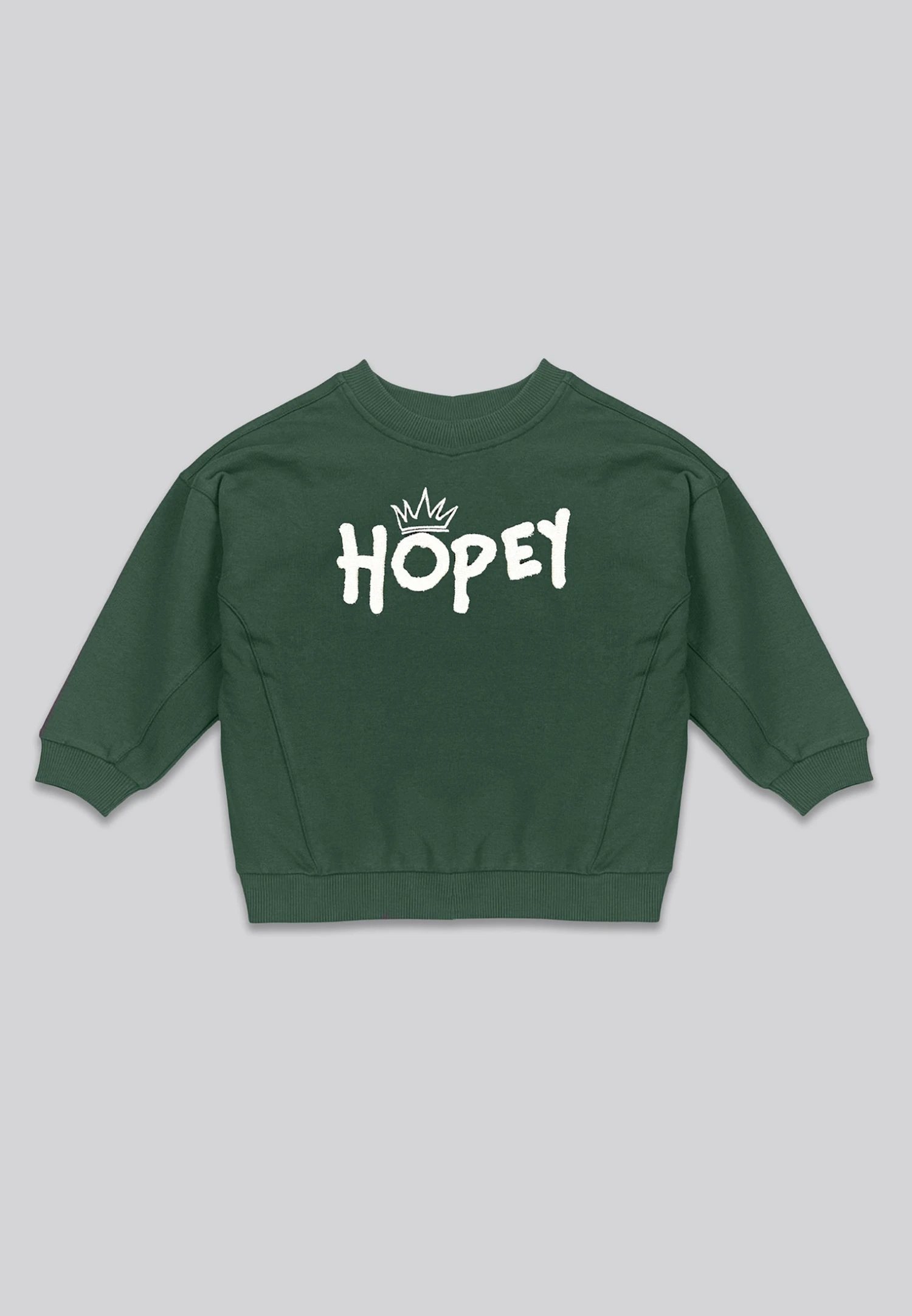 Keep your little one comfy and stylish with our Hopey Oversized Sweatshirt in Green. Made from 100% soft cotton, it’s perfect for all-day wear, keeping them cosy while on the move or relaxing at home. Designed with an oversized fit, this sweatshirt gives plenty of room to play. Featuring our applique Hopey logo across chest, it’s a standout piece for any mini trendsetter. Complete with a crew neckline, along with ribbed cuffs and hem. Ideal for playtime, lounging or exploring in style. Why not pair it with the matching pants for ultimate cosiness.