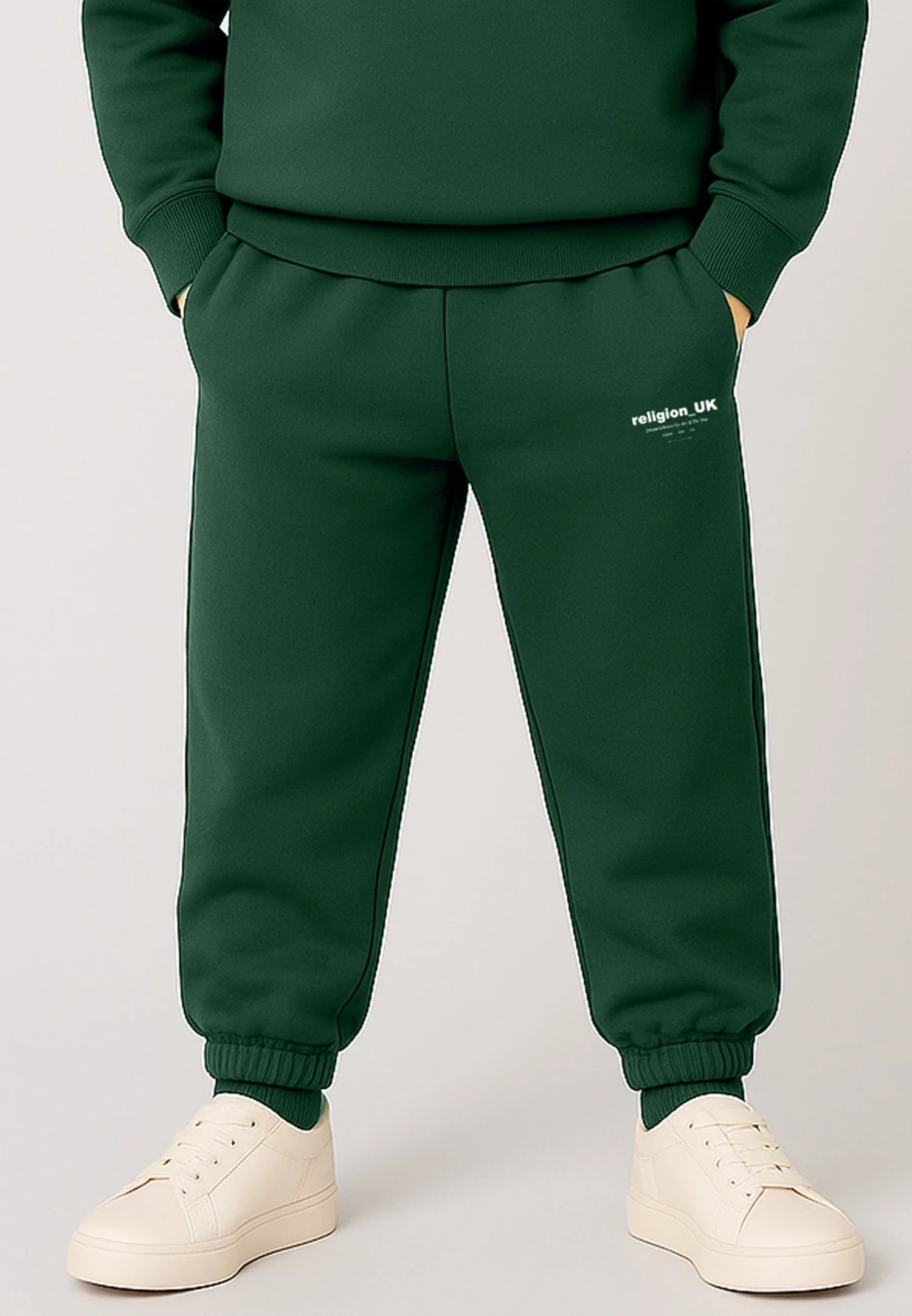 Keep your little one both cosy and stylish with the green Religion Logo Sweatpants. Crafted from 100% soft cotton, these sweatpants offer unbeatable comfort and long-lasting durability. Designed with a relaxed fit, they provide freedom of movement for active days, while the elasticated waist and adjustable drawstring ensure a snug, custom fit as they grow. Finished with our signature logo, it’s a standout piece for any mini trendsetter. Perfect for playtime, relaxing, or adventures in style! Why not pair it with the matching sweatshirt for ultimate cosiness.