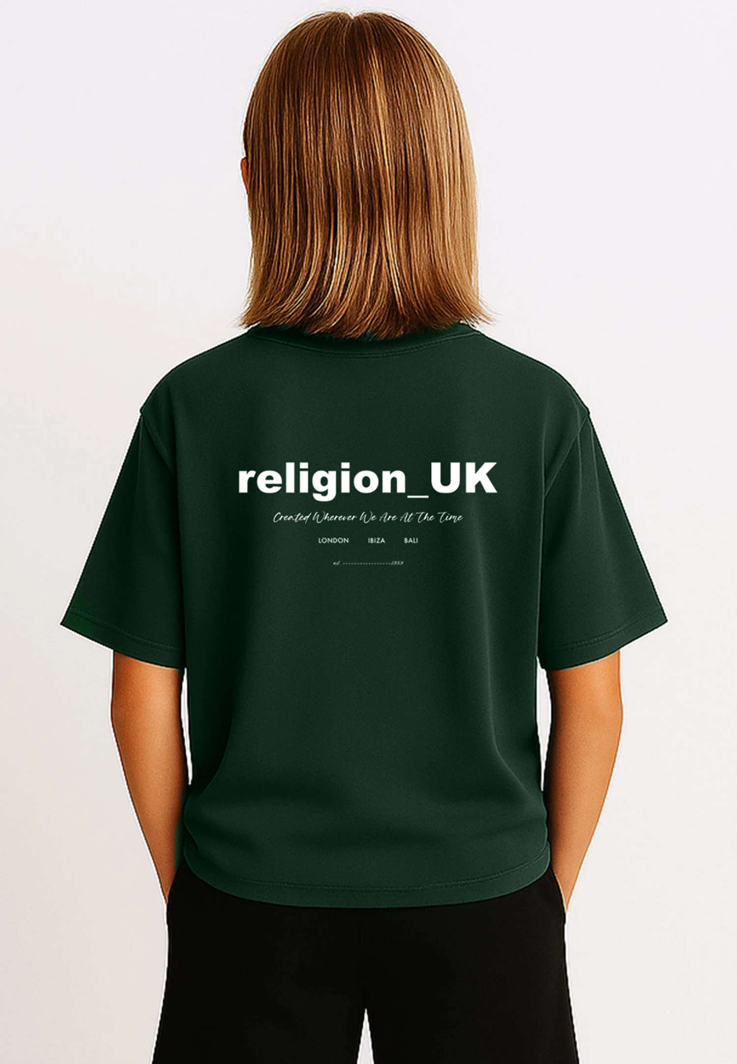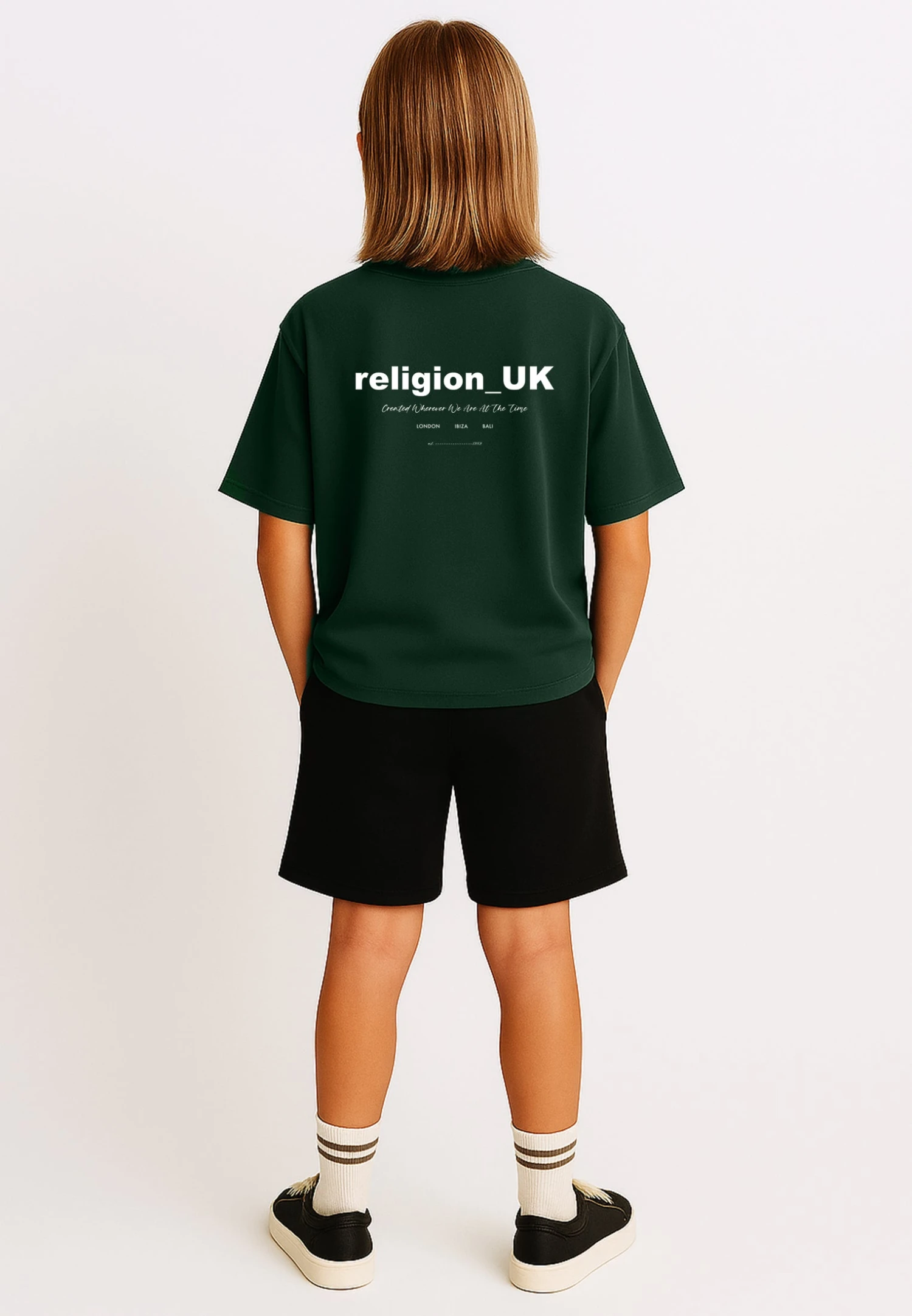 Keep your little one comfy and stylish with our RELIGION Oversized T-Shirt in green. Made from 100% soft cotton, it’s perfect for all-day wear, whether they’re on the move or relaxing at home. Designed with a relaxed fit and short sleeves, this tee provides plenty of room to play. Featuring our RELIGION tour injection print across the back, it’s a standout piece for any mini trendsetter. Complete with a classic crew neckline, it’s ideal for playtime, lounging, or exploring in style.