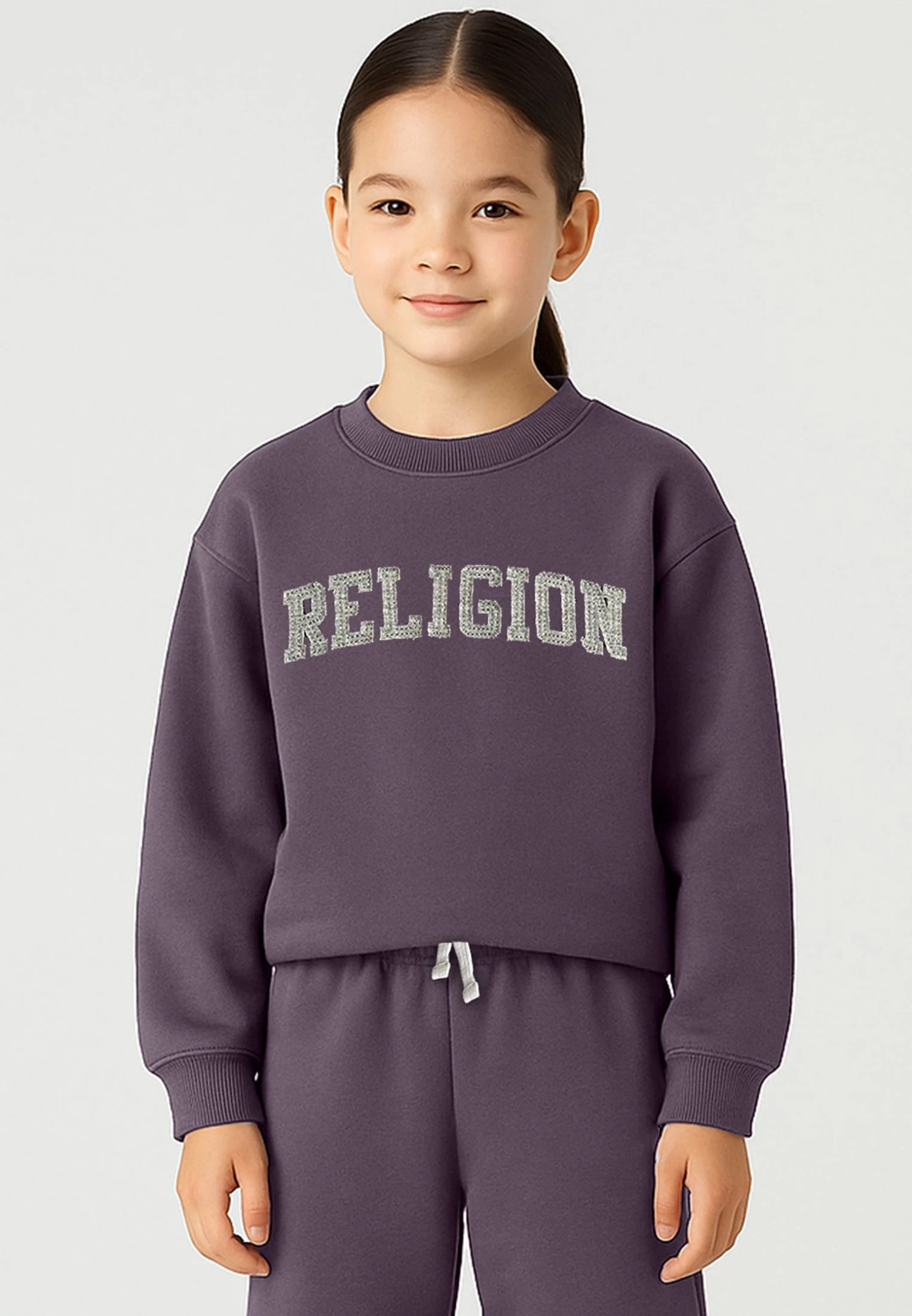 Keep your little one comfy and stylish with our RELIGION Oversized Sweatshirt in Mauve. Made from 100% soft cotton, it’s perfect for all-day wear, keeping them cosy while on the move or relaxing at home. Designed with an oversized fit, this sweatshirt gives plenty of room to play. Featuring our cool RELIGION curved applique on the front, it’s a standout piece for any mini trendsetter. Complete with a crew neckline, along with ribbed cuffs and hem. Ideal for playtime, lounging or exploring in style. Why not pair it with the matching pants for ultimate cosiness.