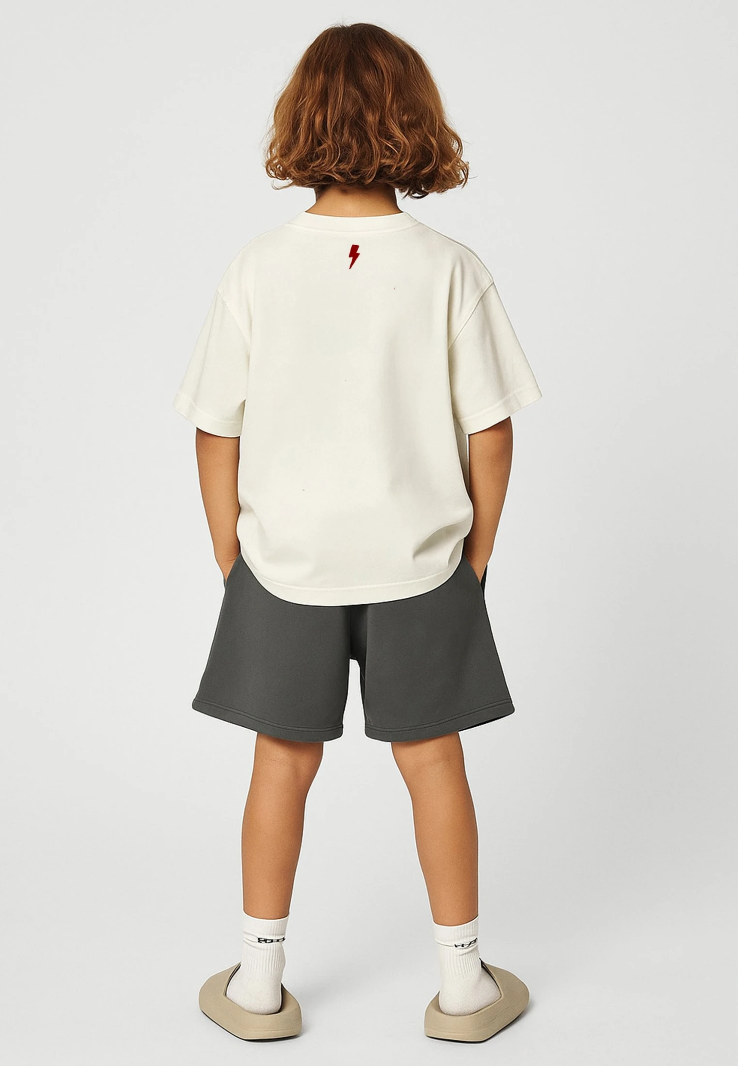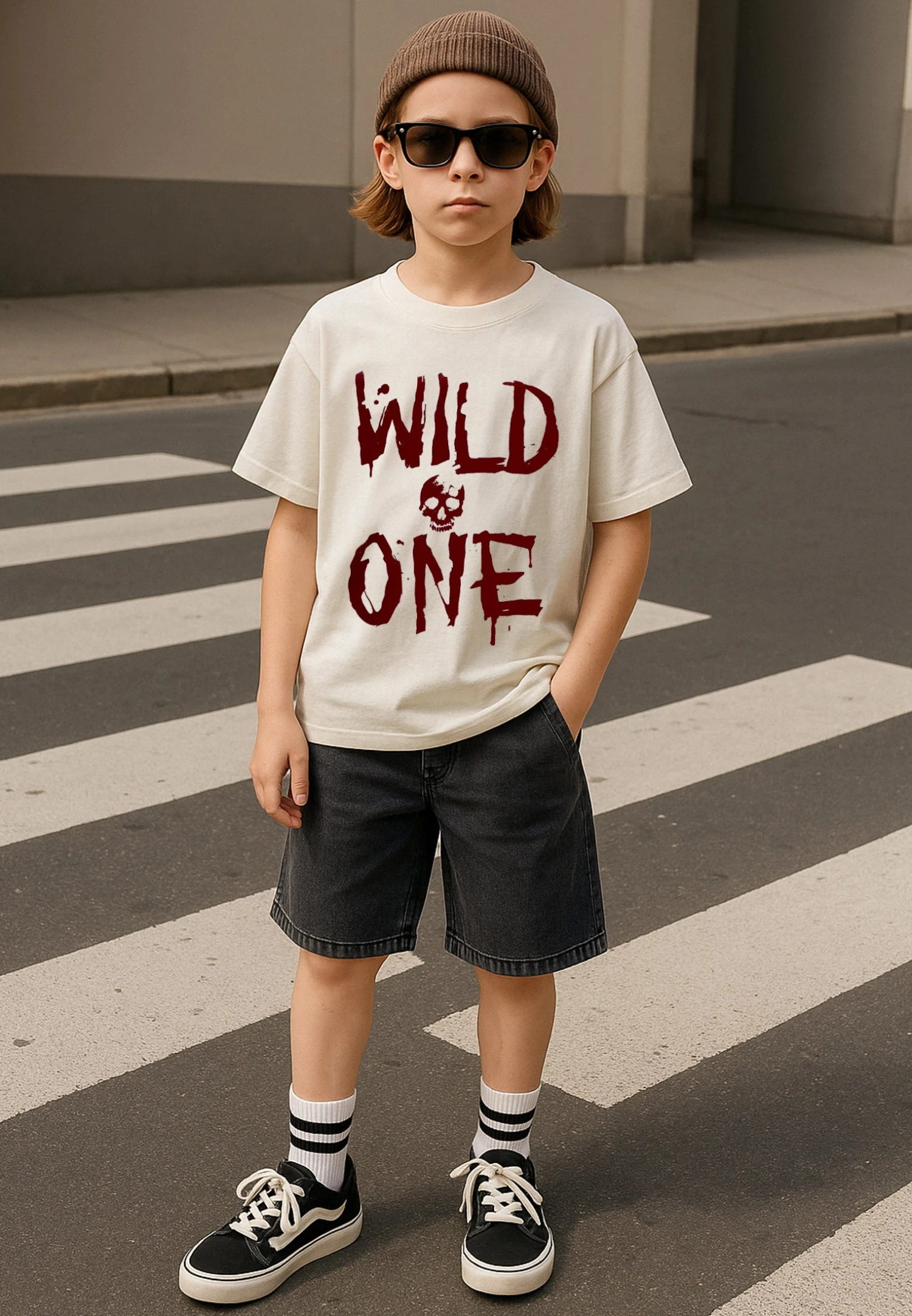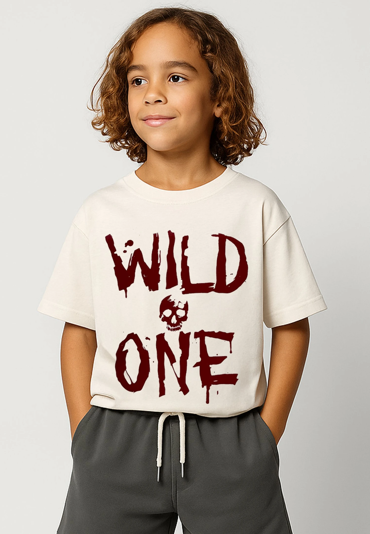 Let your little ones unleash their wild side with our Wild One T-shirt. Made from soft, breathable cotton, this off white tee is all about adventure, featuring a bold slogan graphic with a playful skull on the front and a lightning bolt on the back β adding a touch of edge to their everyday wardrobe. With its classic crew neckline and relaxed fit, itβs perfect for playtime, chilling out or exploring the great outdoors β a must-have for both boys and girls.