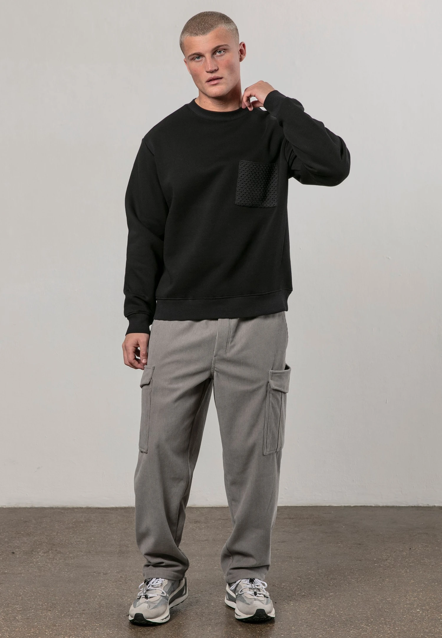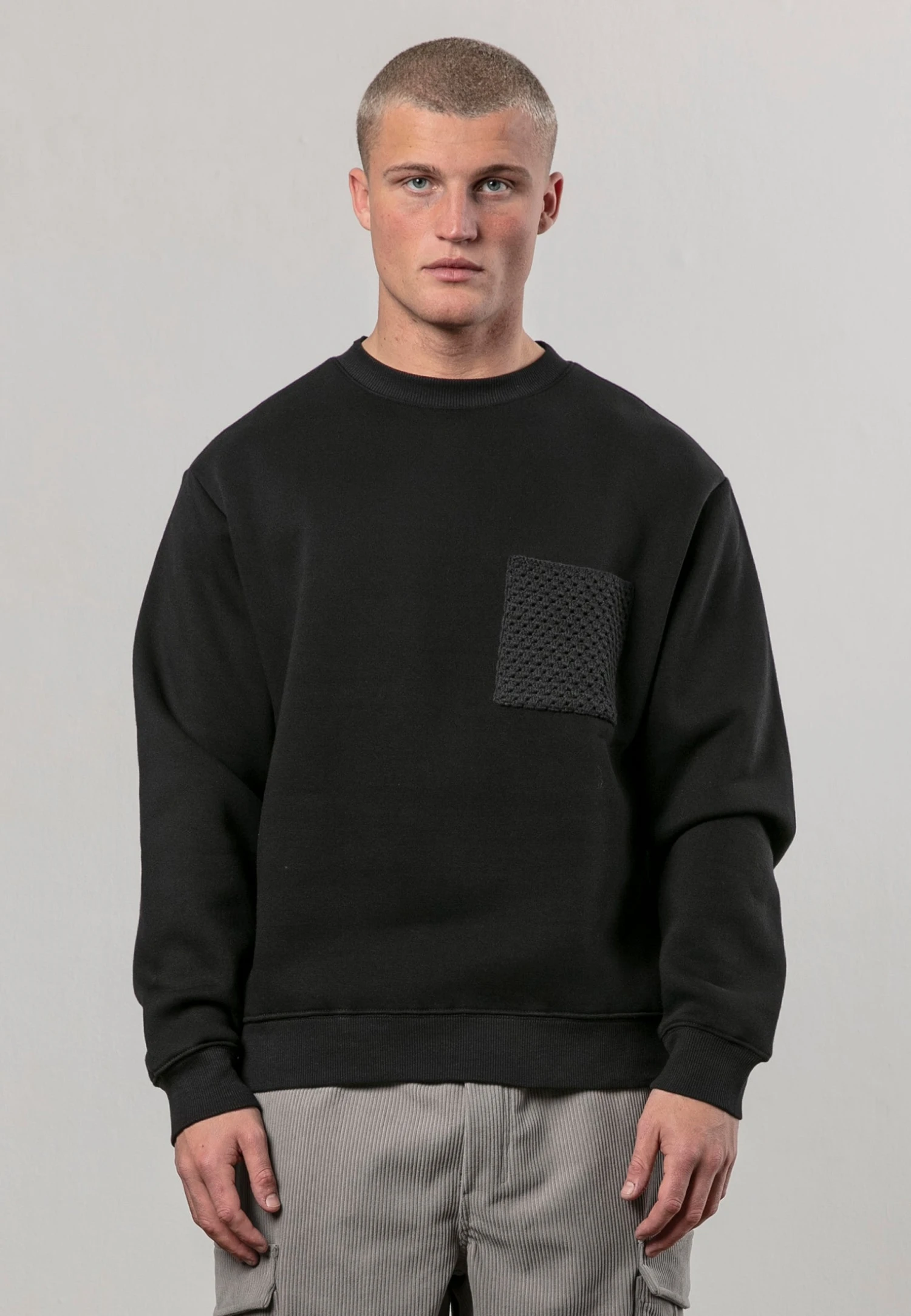 The Knit Pocket Sweatshirt in black is shaped to a comfortable relaxed fit and crafted from brushed-back sweat fabric. Featuring a black knitted chest pocket, crew neckline, and ribbed neck, cuff and hem detailing.
