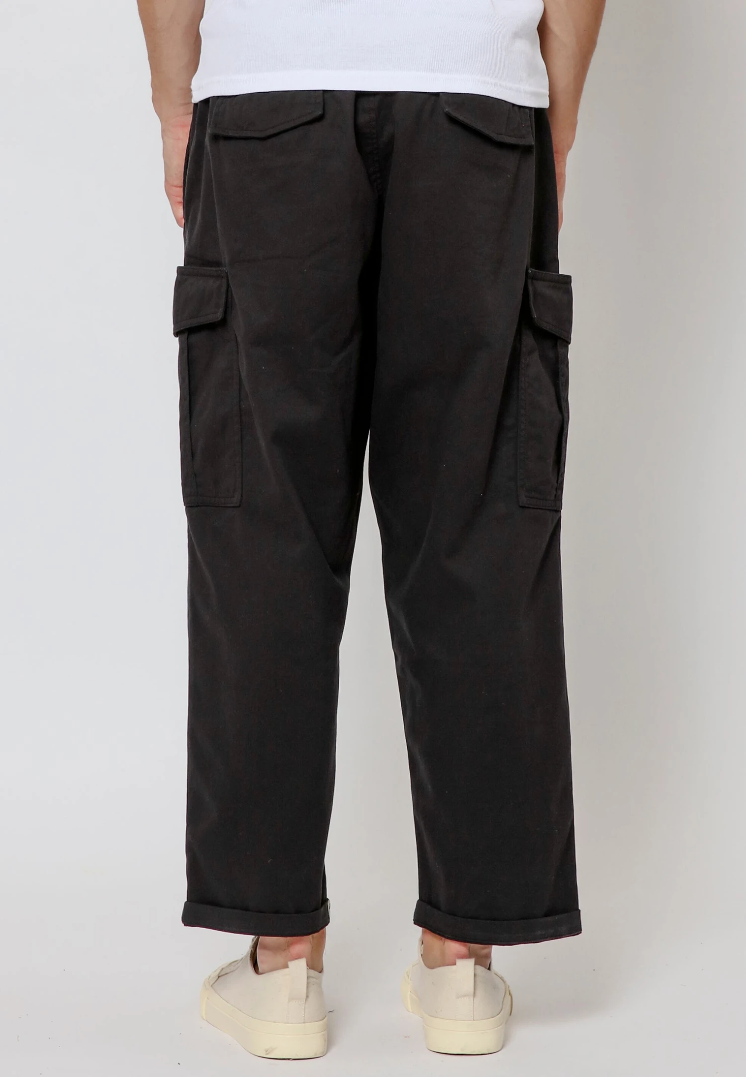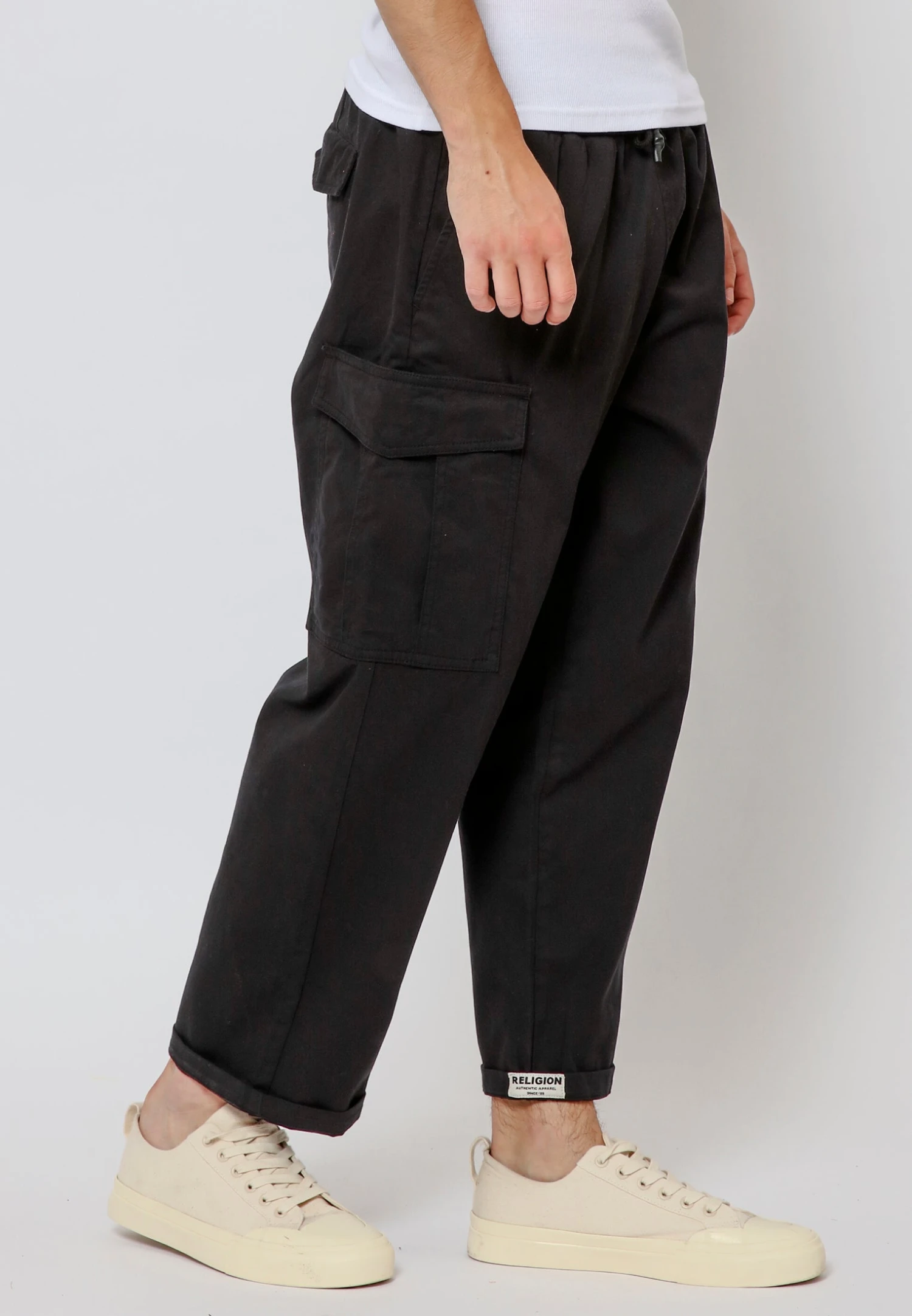 Enhance your comfort with the black Lounge Cargo. These pants feature a drawstring waist for a personalised fit and six pockets, including stylish side cargo pleated pockets. The RELIGION branding on the cuff turn-up adds a subtle yet distinctive touch to complete the look. Perfect for lounging in style.