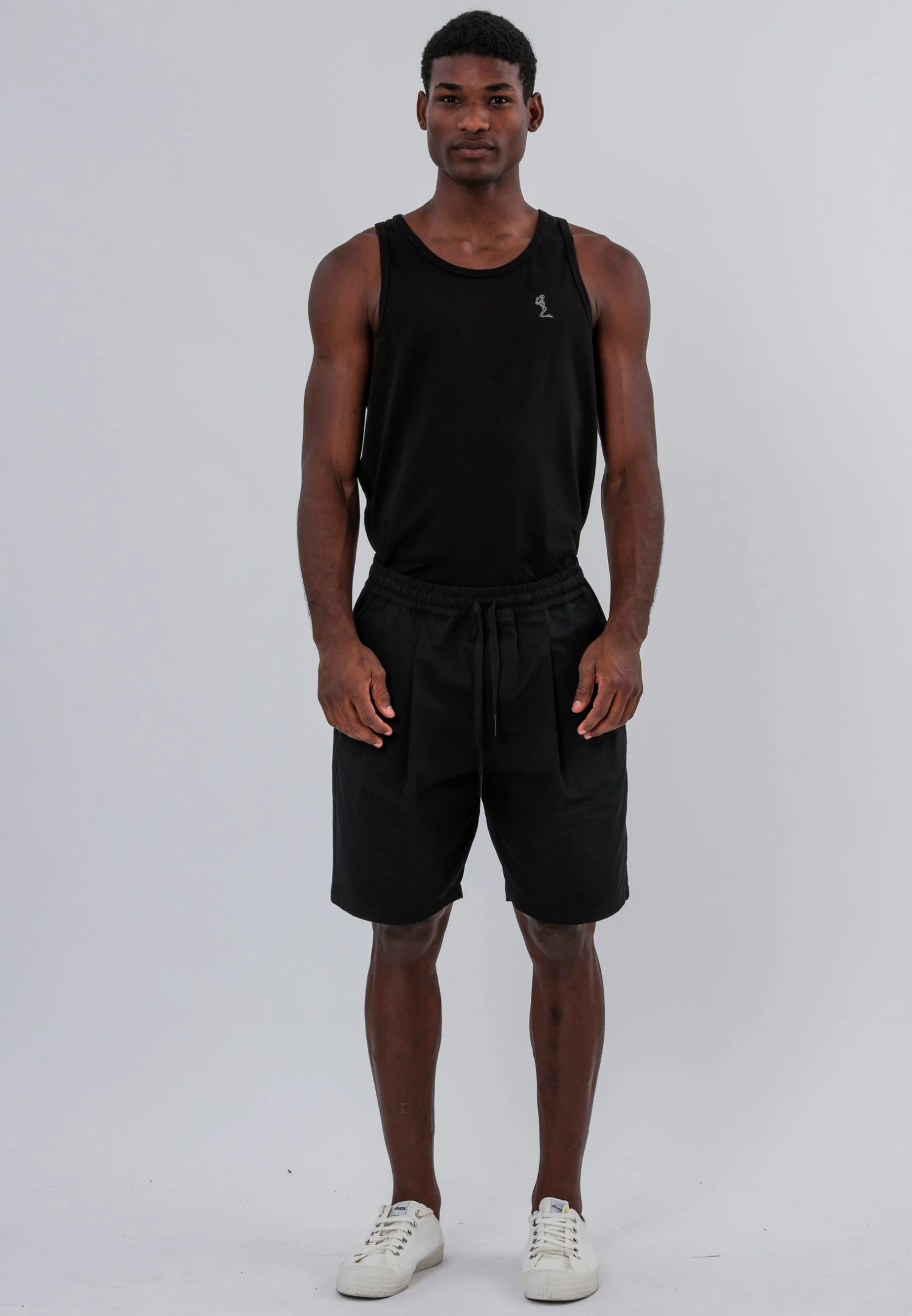 Every wardrobe needs a dependable pair of comfortable shorts. Our Pleated Shorts in jet black are an ideal choice. Made from 100% thick flat cotton, they offer a relaxed fit with a tailored, knee cut. Designed with an elasticated drawstring waist for ultimate comfort and adjustability, they also feature handy side pockets for added functionality.