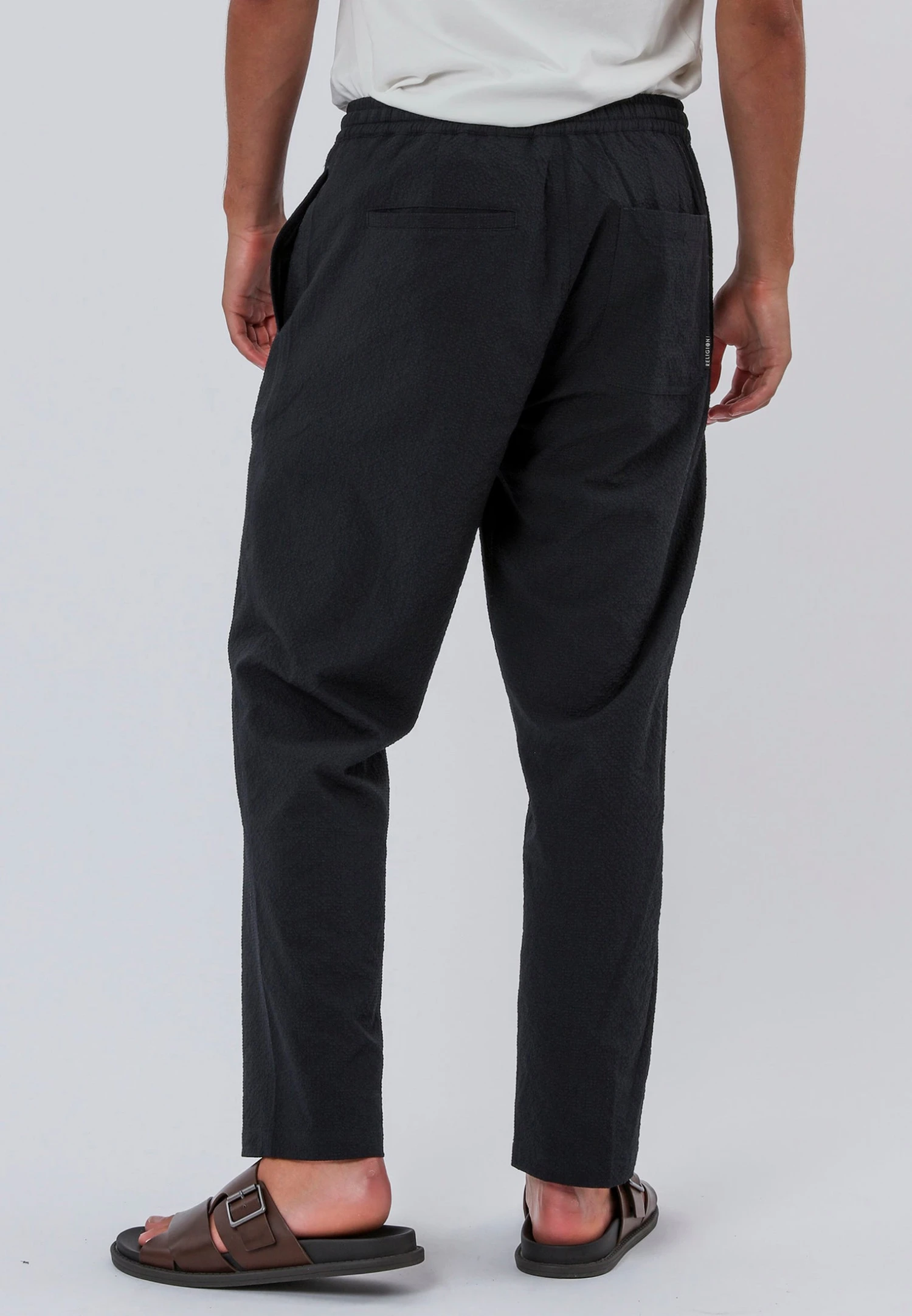 Elevate your everyday wardrobe with the Elasticated Chinos in Midnight. Made from 100% cotton, these chinos are designed in a comfortable regular fit and cut to ankle length. Featuring an elasticated waistband for adjustability. Complete with convenient side pockets and belt loops.