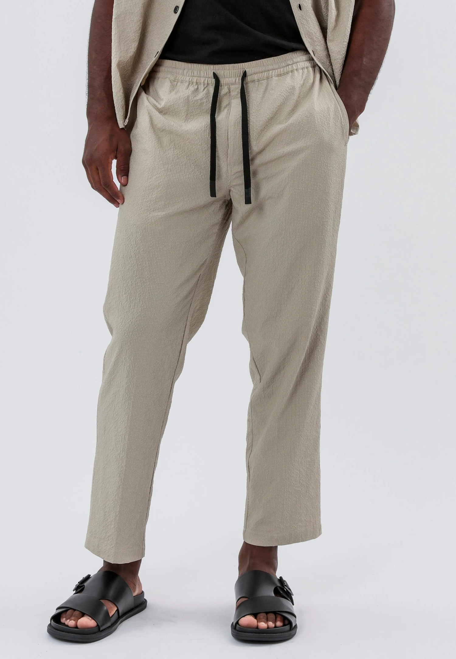 Elevate your everyday wardrobe with the Elasticated Chinos in Shell. Made from 100% cotton, these chinos are designed in a comfortable regular fit and cut to ankle length. Featuring an elasticated waistband for adjustability. Complete with convenient side pockets and belt loops.