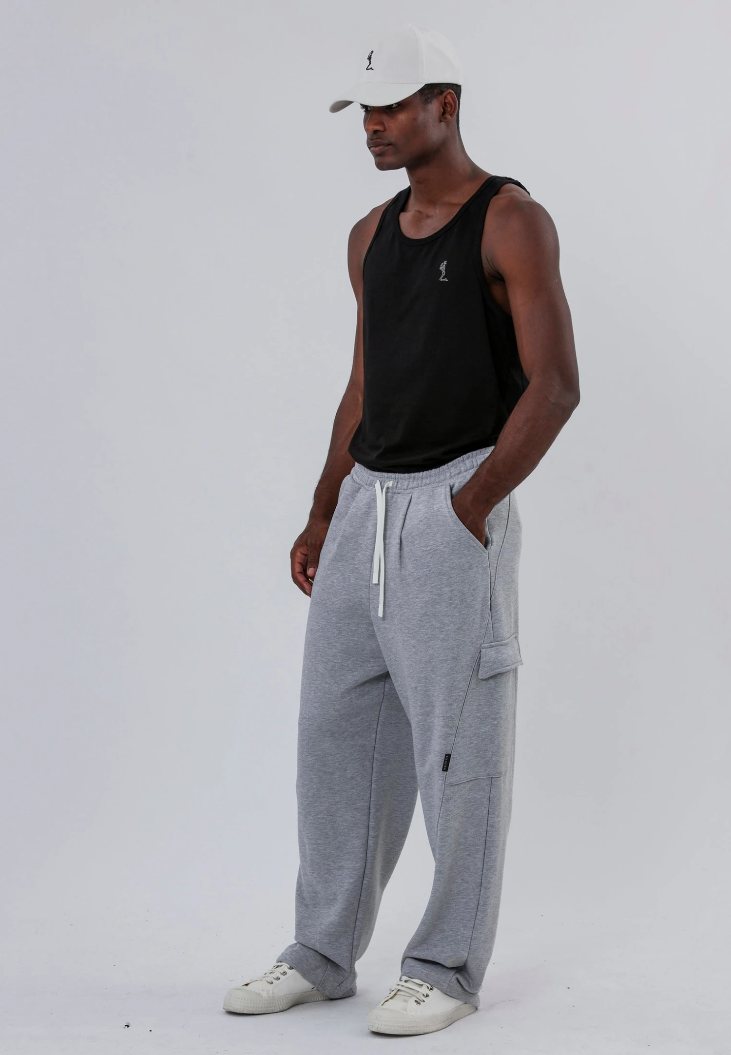 The Relaxed Cargo Pants in Grey Marl are the ultimate blend of comfort and functionality. Designed with a loose, relaxed fit, they feature an elasticated waistband with an adjustable cotton drawstring for a customisable fit. Equipped with practical side pockets and spacious cargo pockets, these trousers are perfect for everyday wear, offering both style and utility.