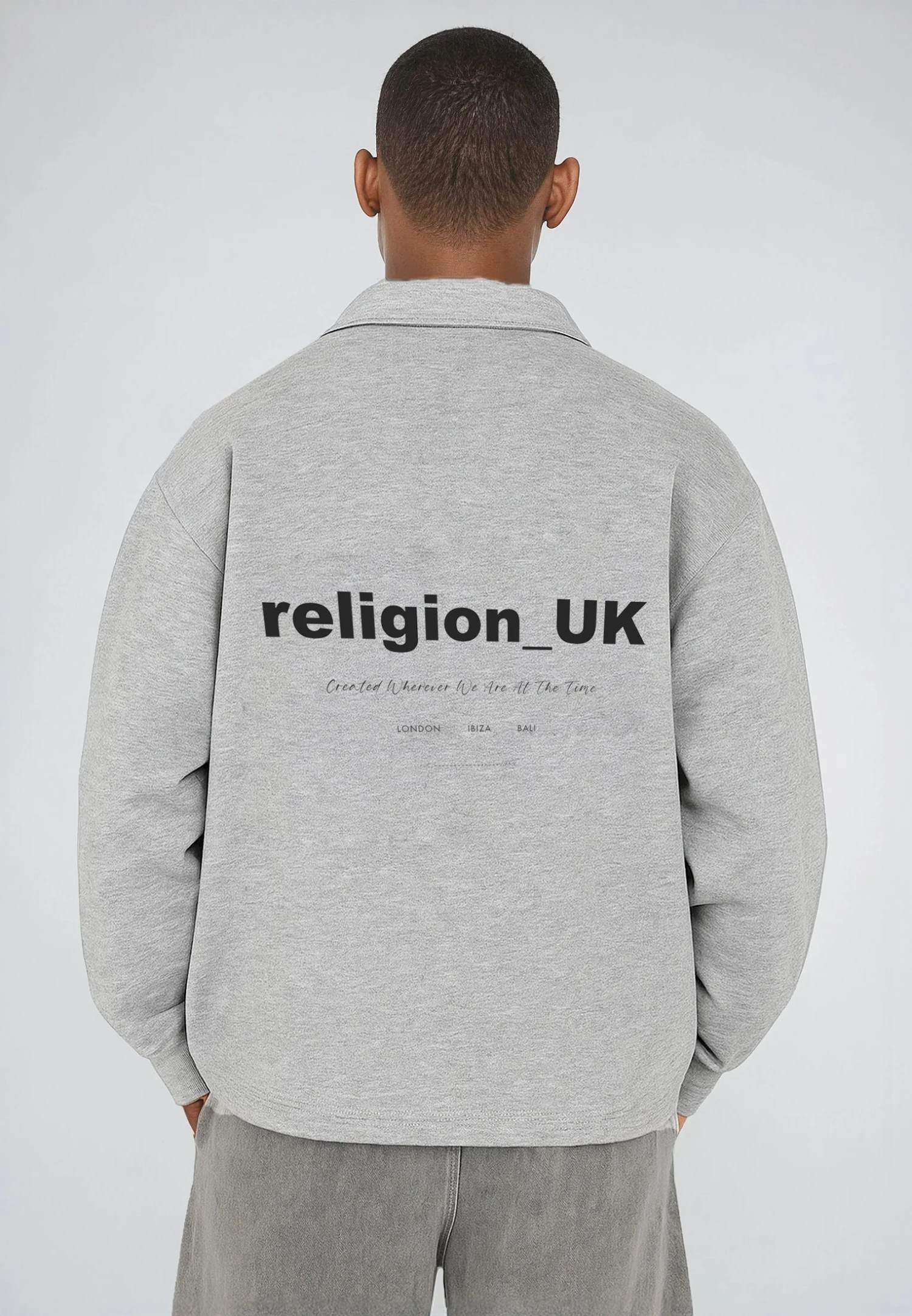 Elevate your casual wardrobe with the Collared Cropped 1/2 Zip in Grey Marl. Featuring a classic collar and a 1/2 zip design. Finished with our RELIGION tour print across the back. Perfect for layering or wearing on its own.