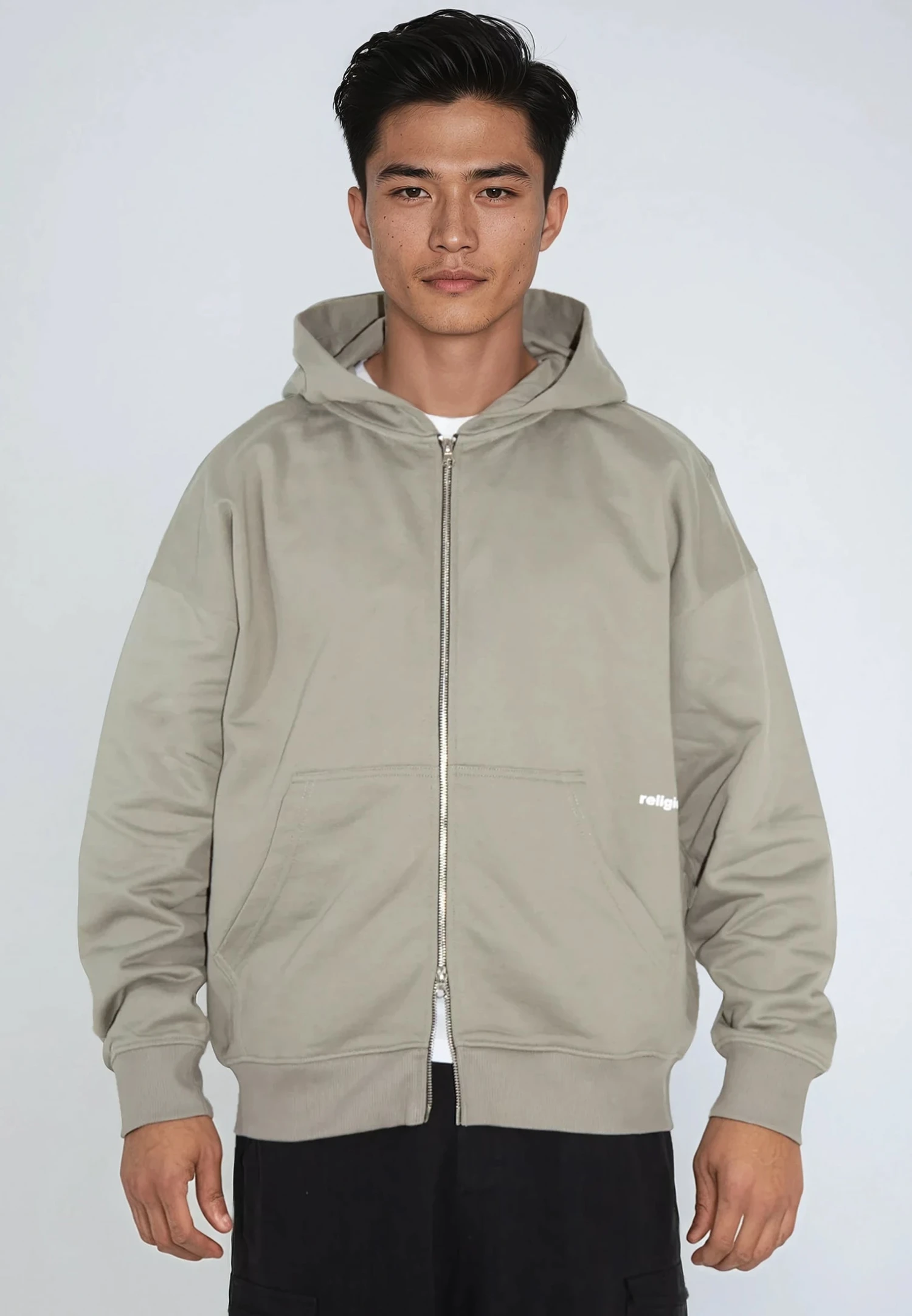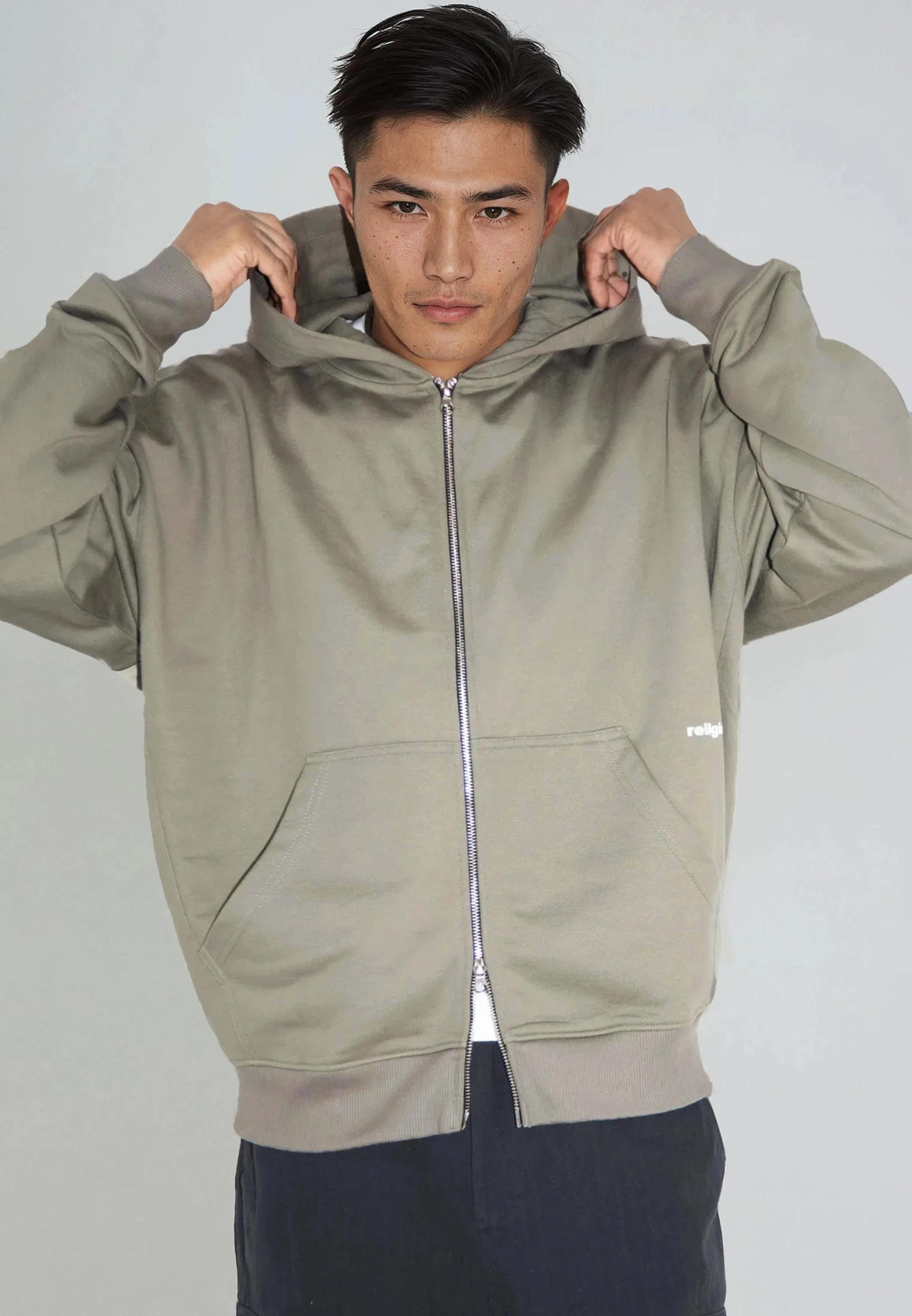 Elevate your everyday style with the RELIGION UK Zip-Up Hoodie. Designed with comfort and style in mind, this khaki hoodie features our signature RELIGION tour injection print displayed on the front and back. Made from 100% cotton, it offers a soft, breathable feel and includes a zip-up closure, ribbed cuffs and hem and a classic kangaroo pouch pocket for added practicality.