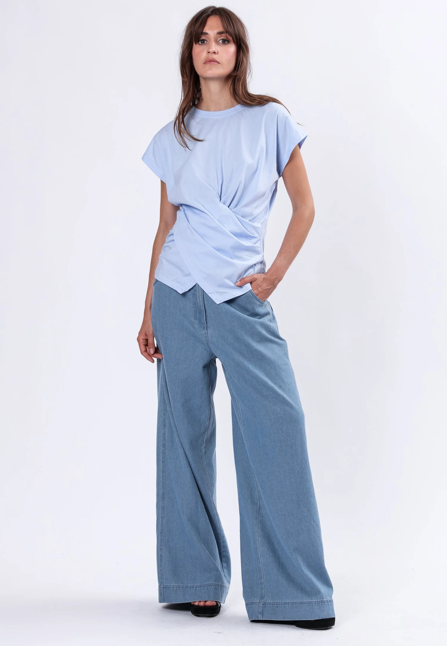 The Time tee is a fitted tee in pale blue featuring drape detailing at the front hem, adding a twist to this easy basic. With a regular fit, crew neckline, and short sleeves, it’s hip-length and made from soft cotton jersey. A versatile everyday wardrobe essential. The model wears a size S. Length from the top: 63 cm