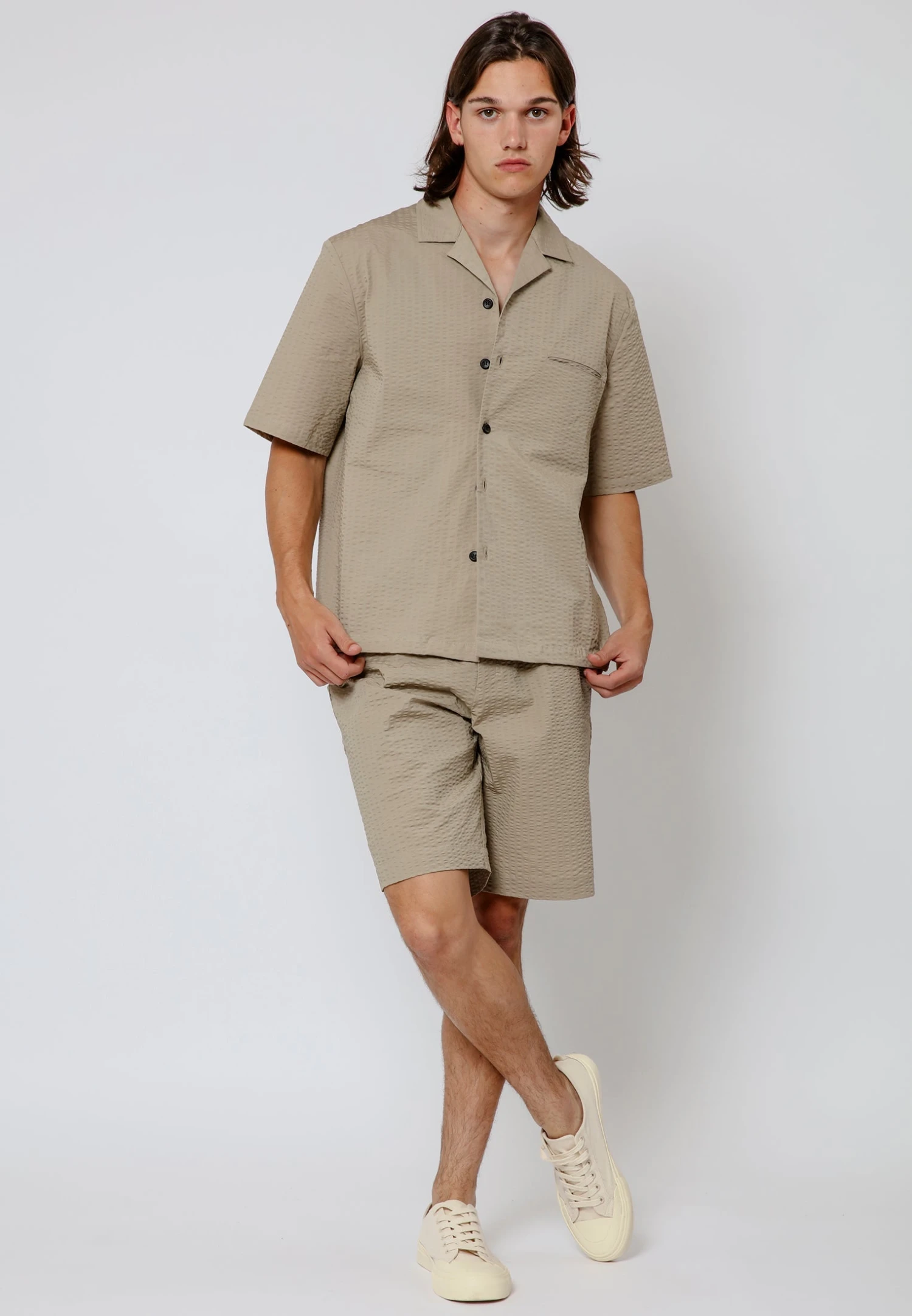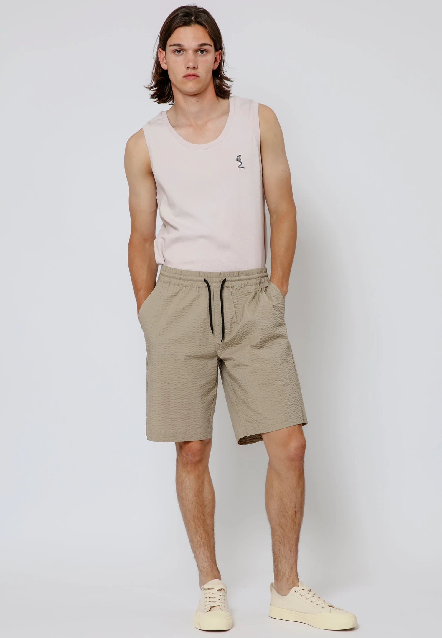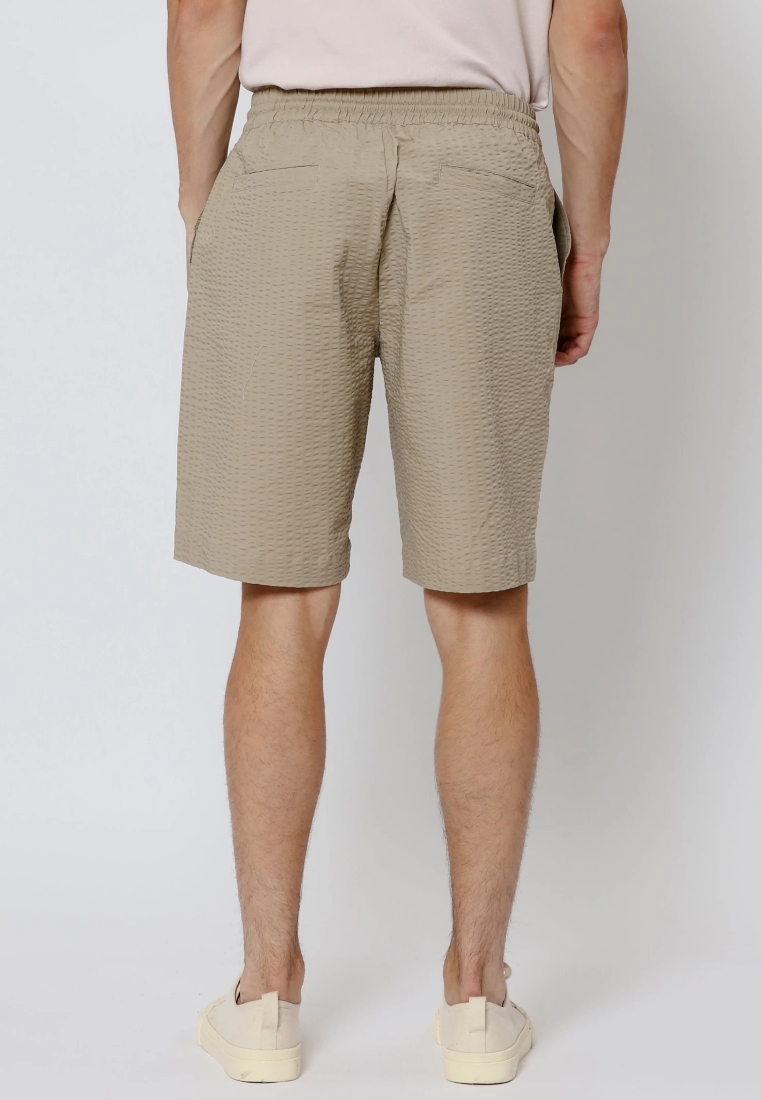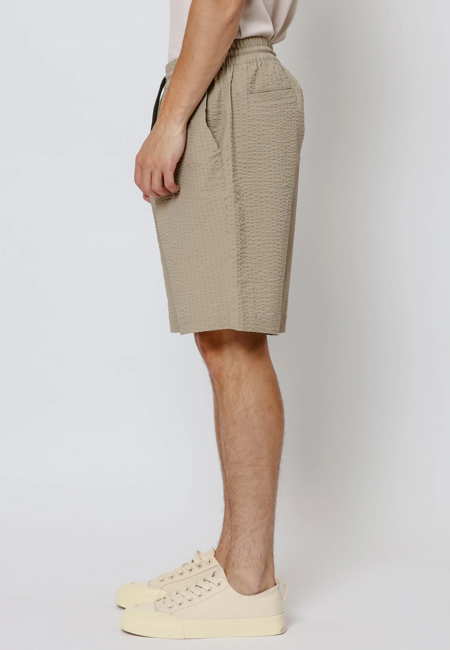 Experience comfort and style in our Trilogy shorts in stone. These knee-length shorts feature an elastic waist with a drawstring for a personalised fit. Crafted from textured cotton, they offer a relaxed and loose fit, while the 4-pocket design adds both functionality and flair. Perfect for a laid-back yet fashionable look.